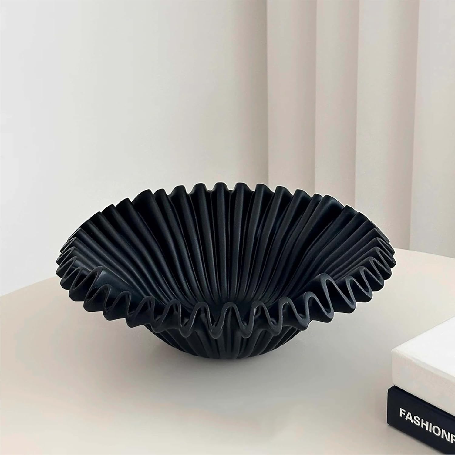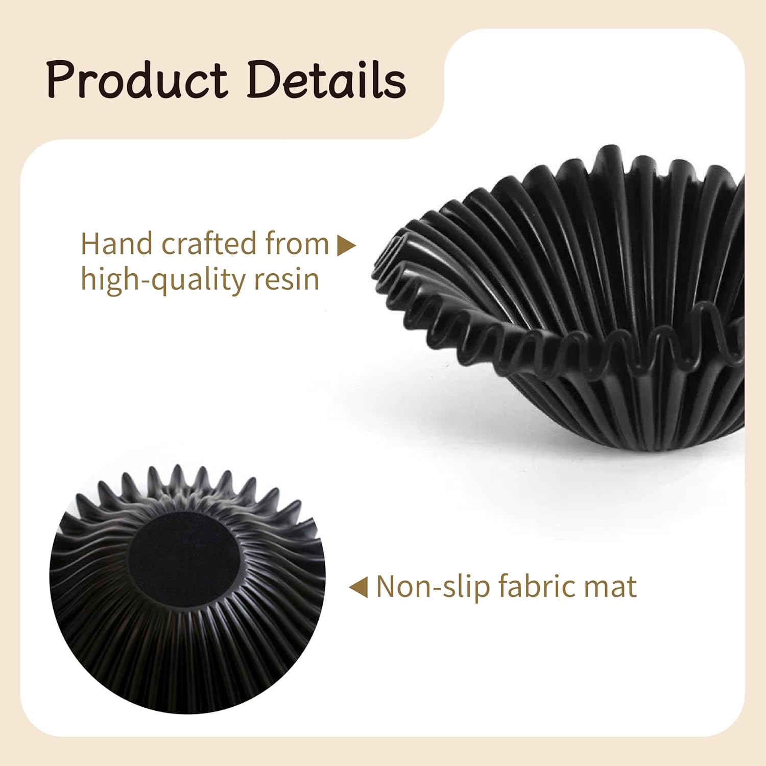 Modern Decorative Bowl with Ruffled Design, Scalloped Resin Centerpiece Bowl for Home Decor, Entryway Key Holder and Fruit Display (Black)