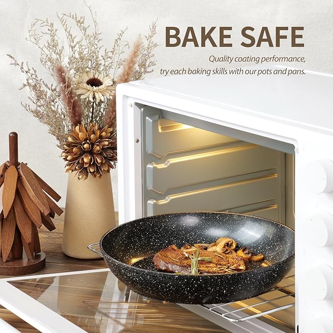 • 1. Ultra Non-Stick Performance: Crafted with a premium nonstick coating, our kitchen pans set ensures a seamless cooking and cleaning experience.