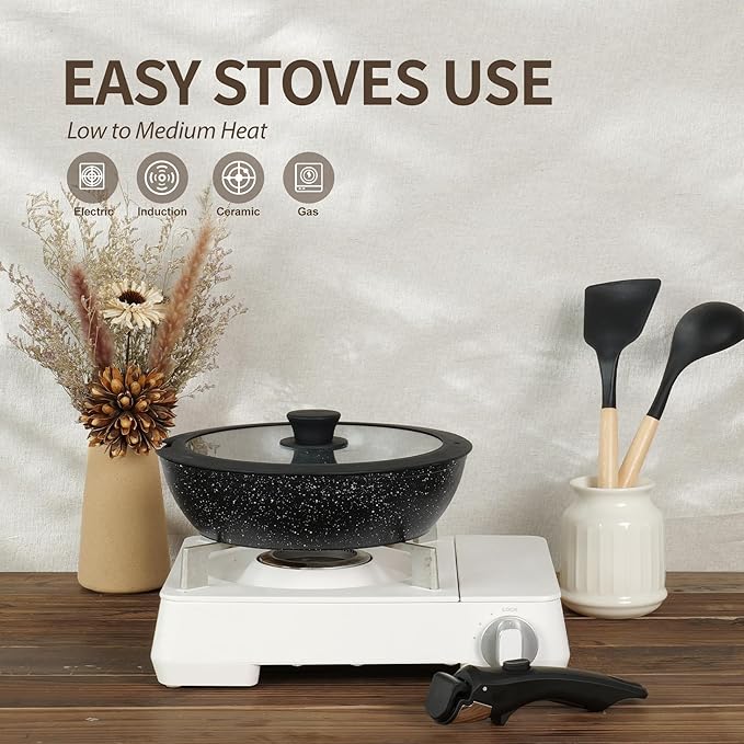 • 2. Innovative Detachable Handles: Our removable handle with a secure locking mechanism. This ensures a stable and reliable grip during cooking, so you can cook with confidence every time.
