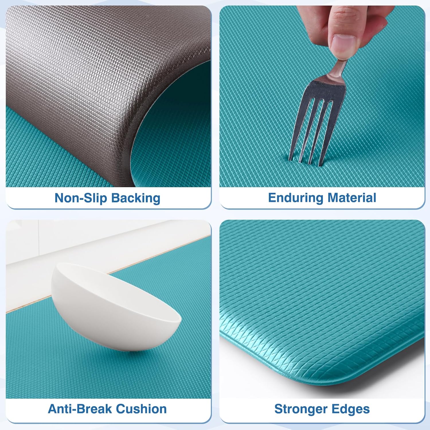 • Non-Slip Design: This standing mat features non-slip backing to keep it securely in place on various surfaces like tile, wood, ceramic, and marble. For optimal safety, always place the kitchen mat on dry, flat surfaces
