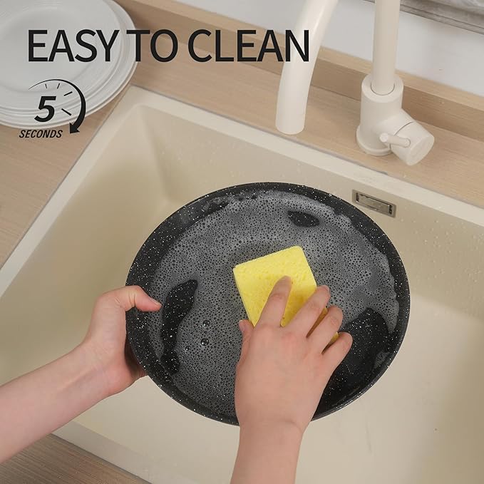 • 3. Easy Cleaning & Wide Compatibility: Just a cloth and rinse it with water, less water wasted.recommend hand wash,it is really easy to clean. with extended bottom design. Our nonstick cookware can work on all cooktops, including induction.