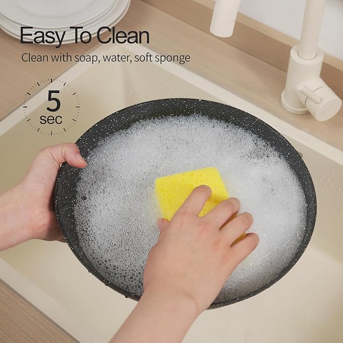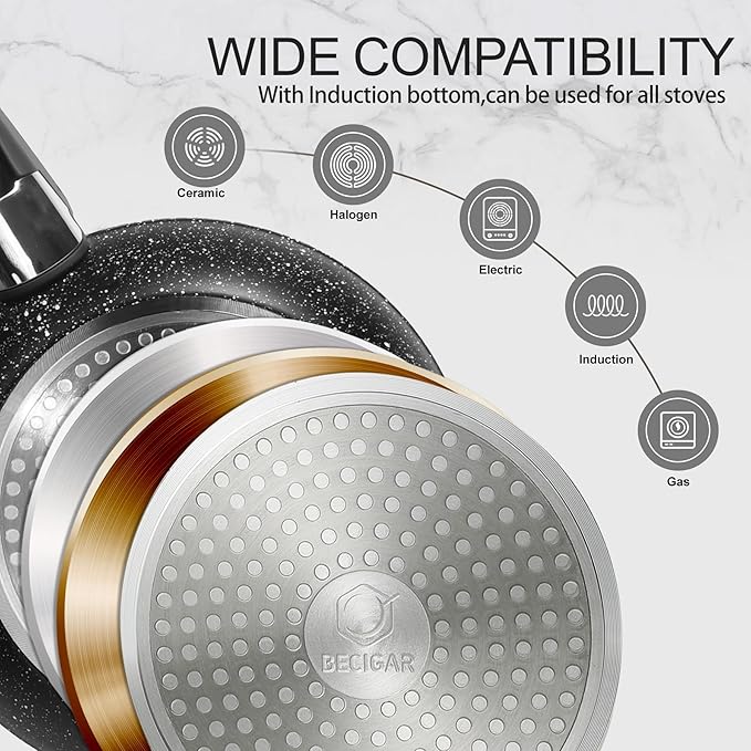 • 1. High-Performance Nonstick Ceramic Coating: Our pots and pans set ceramic with high Non-stick performance, the ceramic nonstick pan is PFOS/PFOA free, pots and pans set ceramic nonstick cookware ensures your daily cooking is always safer and healthier.