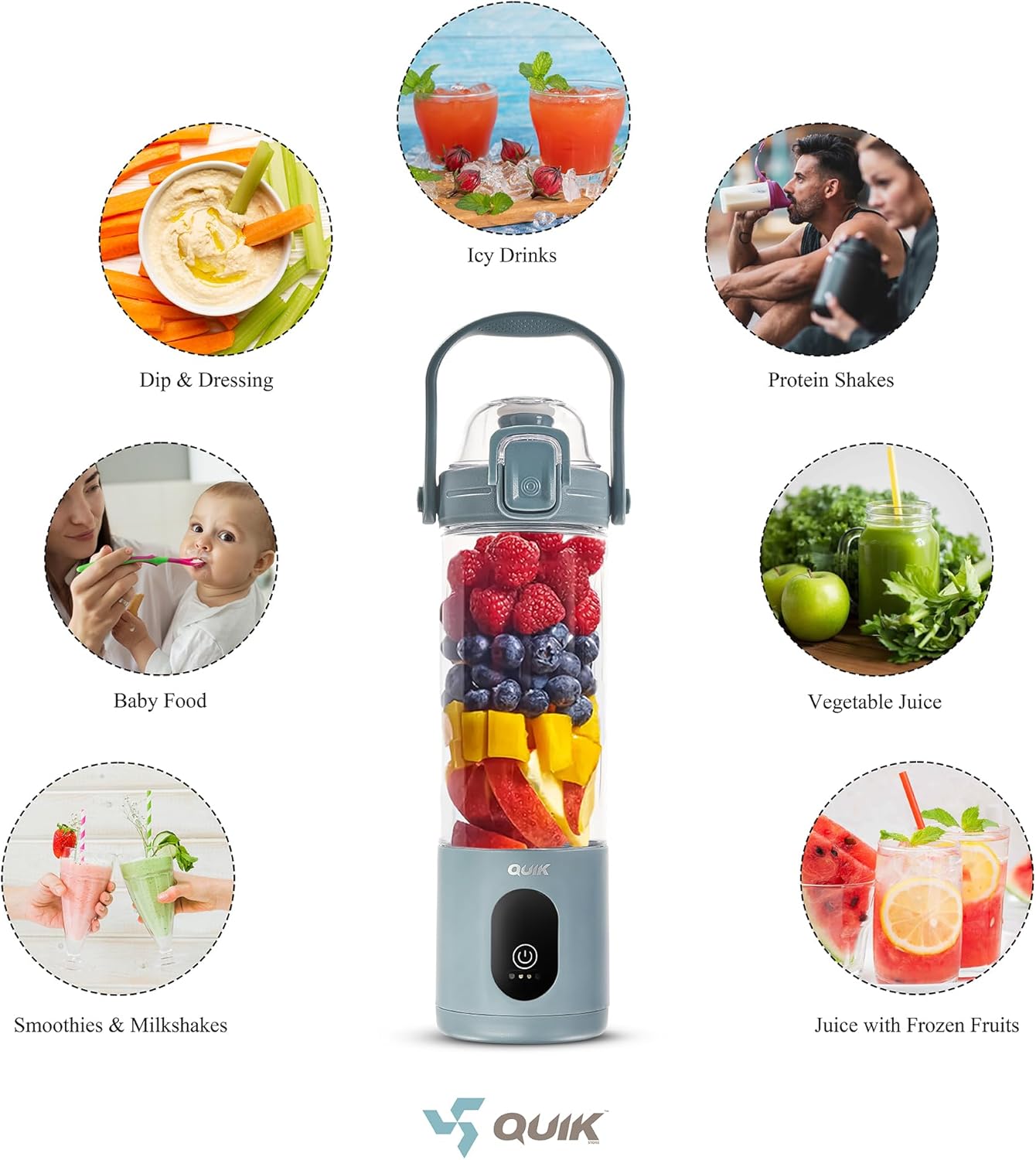 Portable Blender - Cordless 24oz. Personal Blender for Shakes and Smoothies, Licuadora, BPA Free - Ice Crush, Dishwasher safe parts, Waterproof, Triple Batteries, Juicer Cup (Gray)
