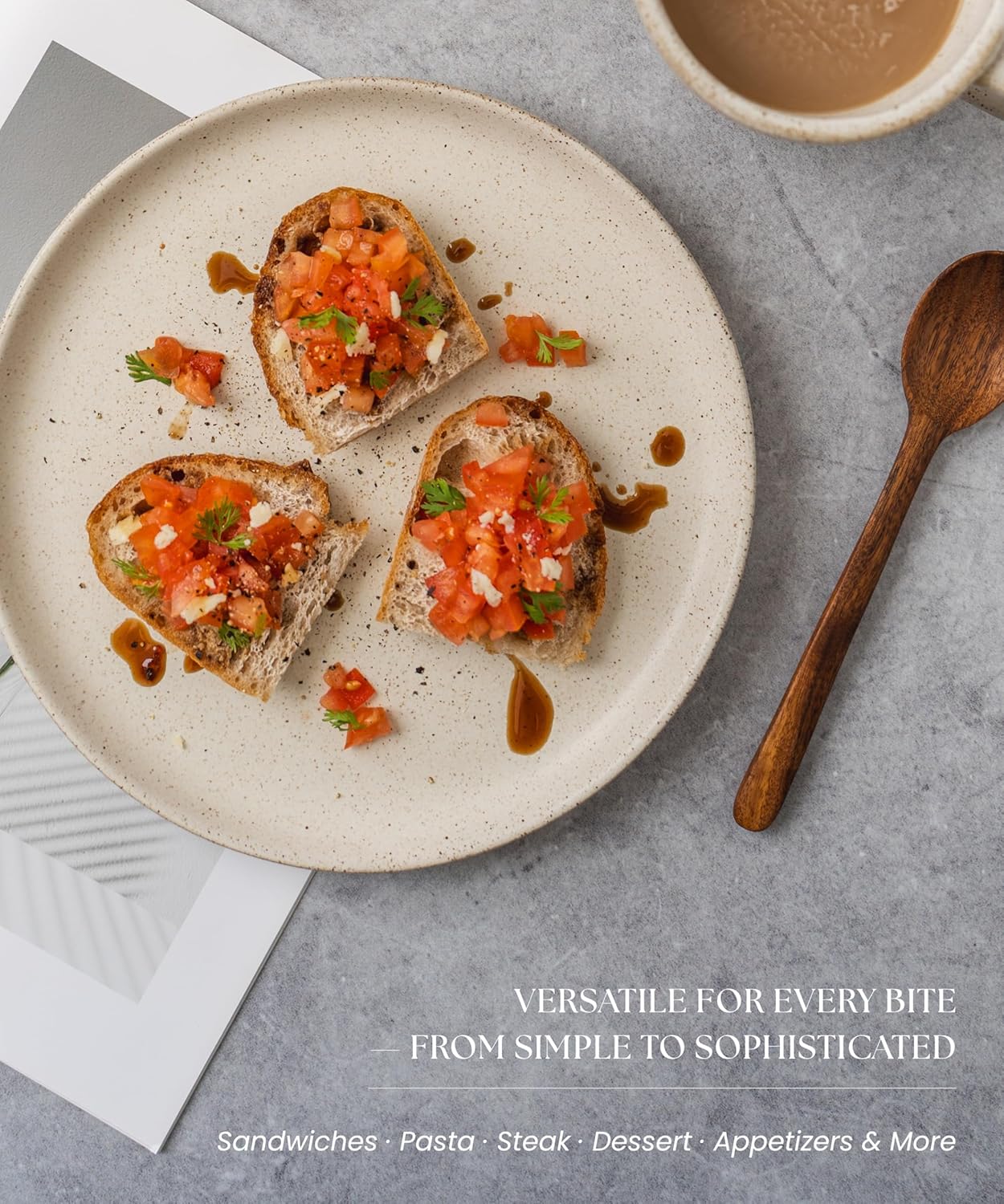 • 【 COZY & VERSATILE 】 Designed for both aesthetics and functionality, this 8.5” stoneware plate is ideal for a variety of meals, from crisp salads and artisanal cheese platters to hearty entrées and delectable pastries. The gently curved edges and well-balanced weight provide a comfortable dining experience, elevating everyday meals into mindful indulgences.