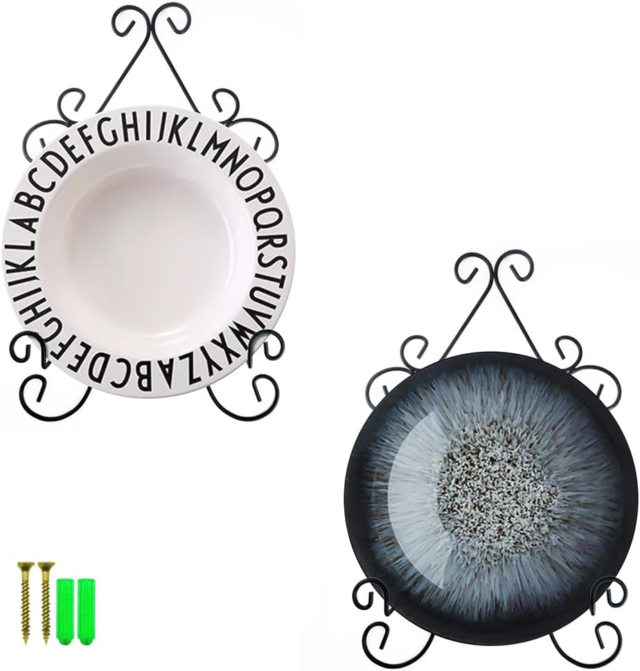 YY YEARCHY Plate Stand Holder for Wall Hanging Display Rack Art Hanger Metal Easel Photo Holder Books Bowls Platters (Black 2 Pack, 8 inches/12.6" x 7.87" x 1.57")