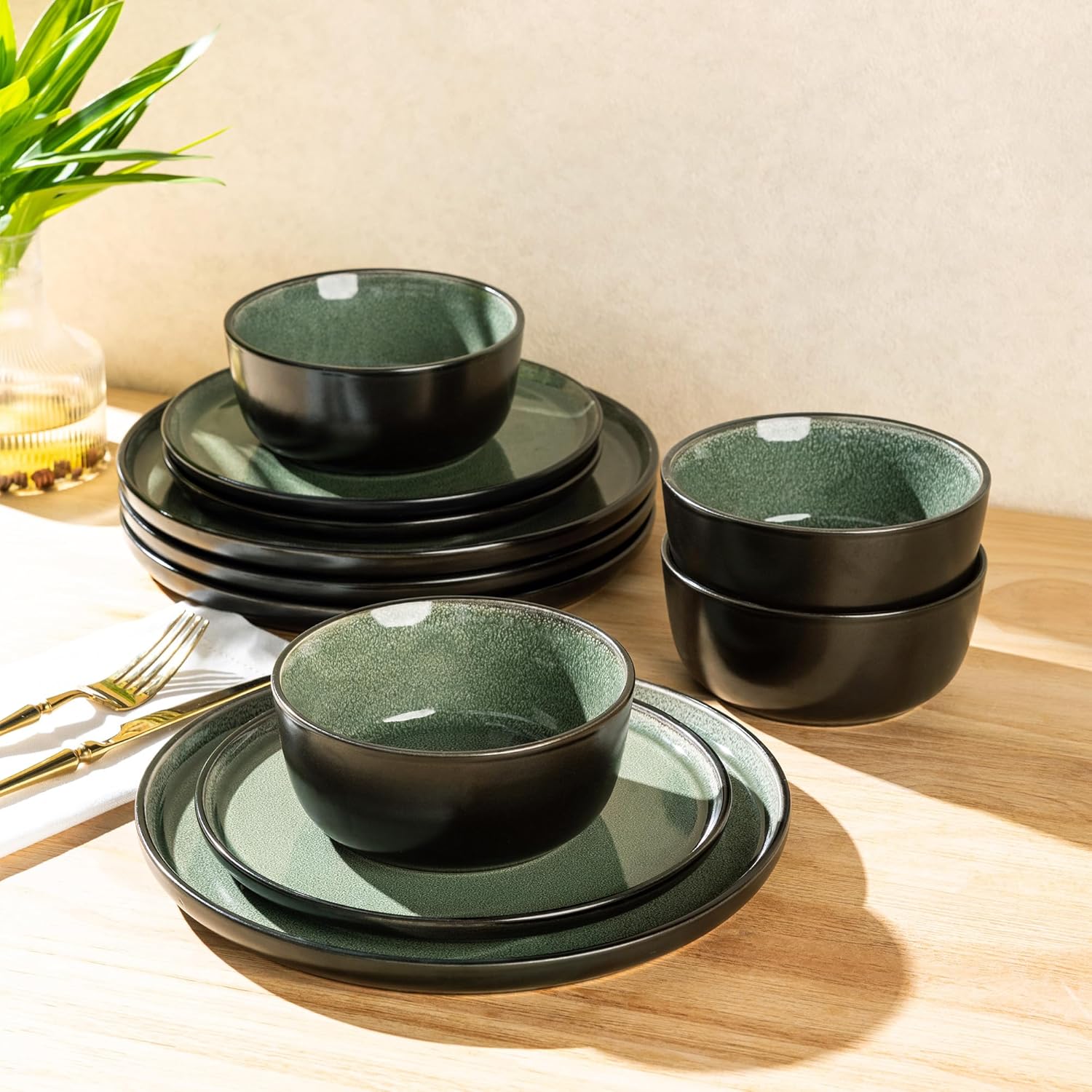 AmorArc Stoneware Dinnerware Sets,Round Reactive Glaze Plates and Bowls Set,Highly Chip and Crack Resistant | Dishwasher & Microwave Safe Dishes Set,Service for 4 (12pc)