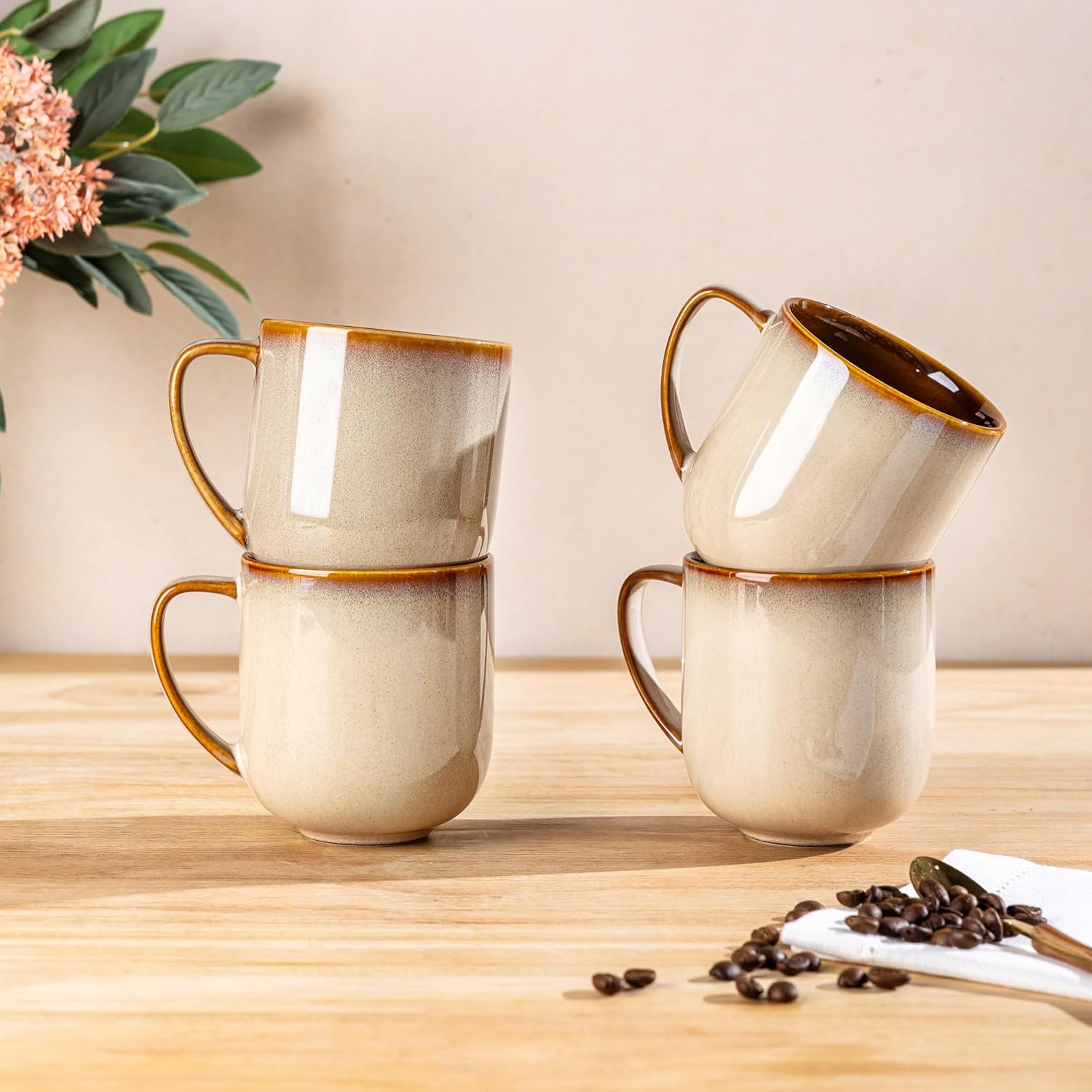 LERATIO Ceramic Dinnerware Sets for 4,16-Piece Reactive Glaze Plates and Bowls Set with Mugs,Highly Chip and Crack Resistant | Dishwasher,Microwave & Oven Safe Dishes set-Kahki