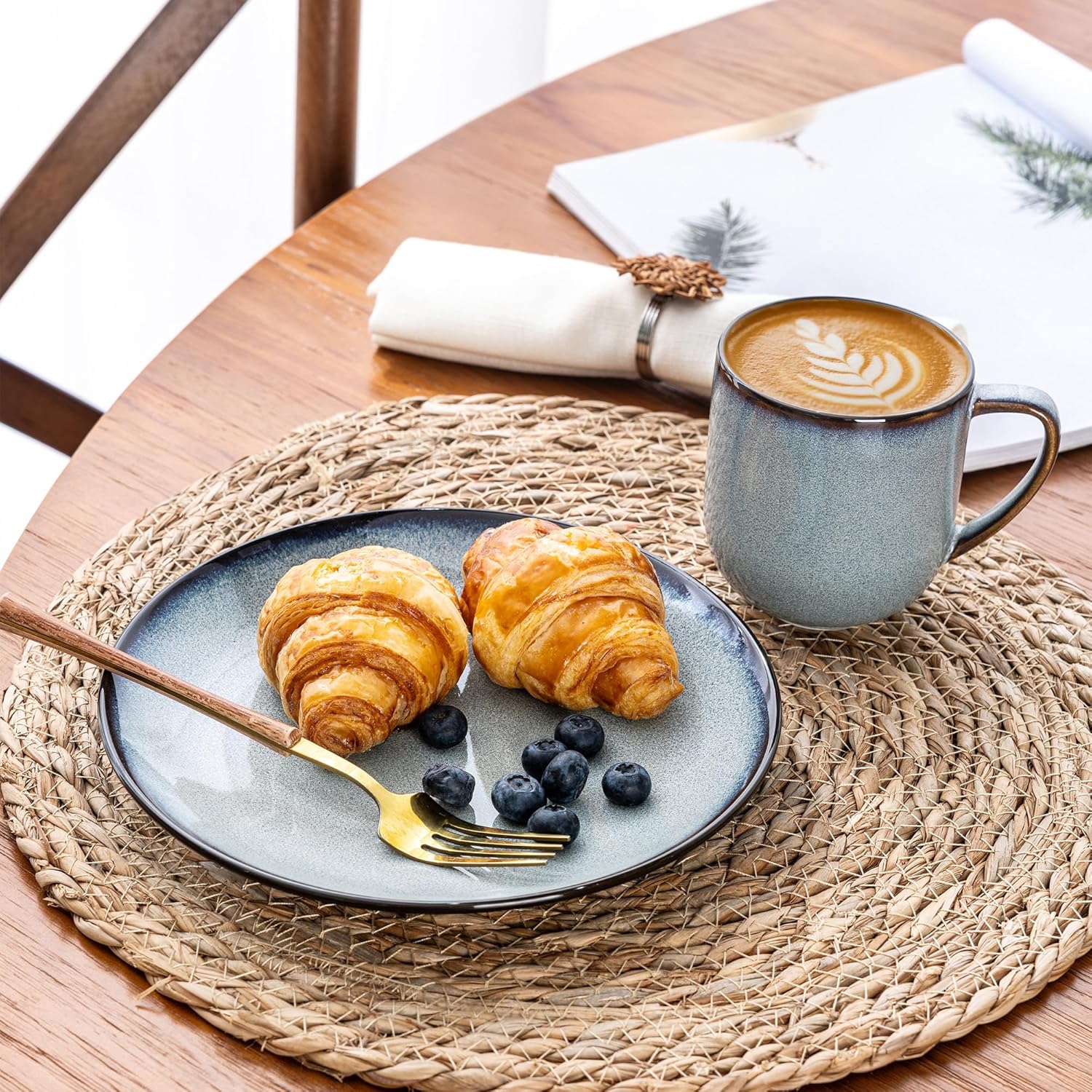 • 【WHAT YOU WILL RECEIVE】 This 16-piece dinnerware set includes 4 x 10.5-inch dinner plates, 4 x 8.25-inch salad plates, and 4 x 24 oz cereal bowls,4X 12oz Coffee mugs. Ideal for small families, couples, or individuals, this set perfectly meets all your dining needs with four complete place settings.