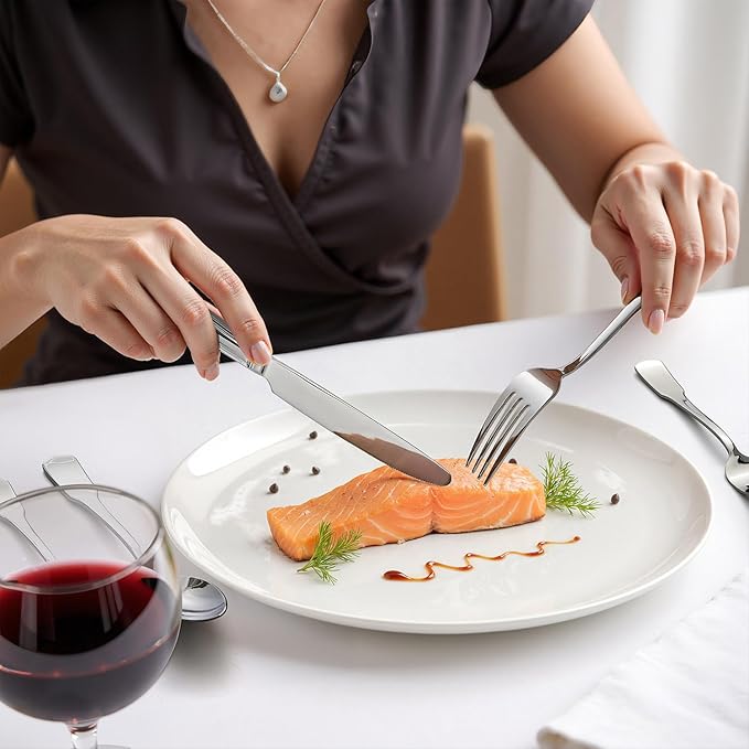 • COMFORTABLE & FUNCTIONAL: The ergonomic design of the handles ensures a comfortable grip, making it easy to handle and use. The balanced weight distribution adds to the overall functionality, allowing for effortless cutting, scooping, and stirring. Enjoy a pleasant dining experience with these HIKAA utensils.