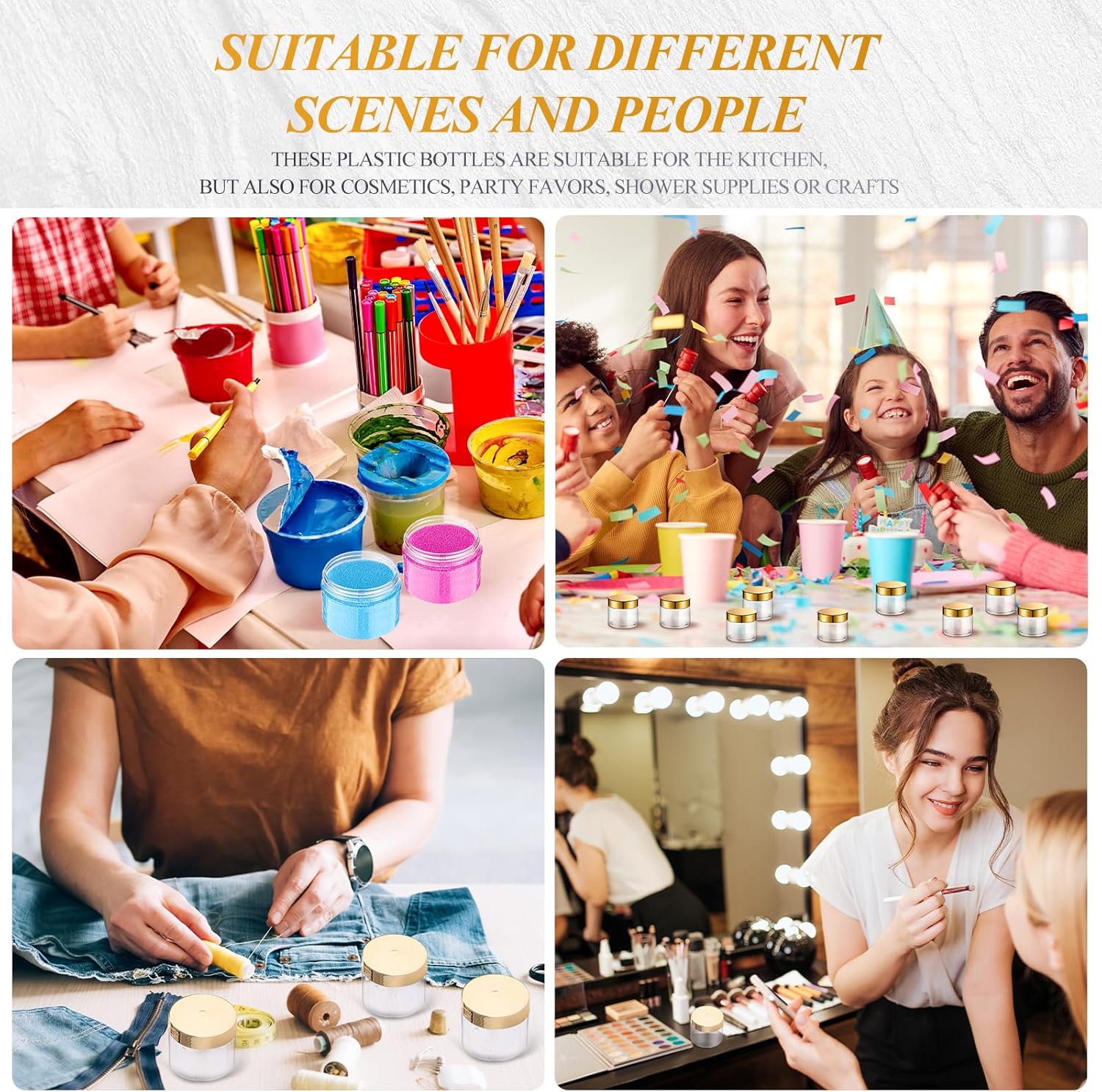 SATINIOR 6 Pack 6 oz Plastic Jars Containers with Lids Wide-mouth Refillable Leakproof Reusable Round Empty Jars for Travel Cosmetic Dry Food Spice Candy Cookie Home Kitchen Organizing(Gold)