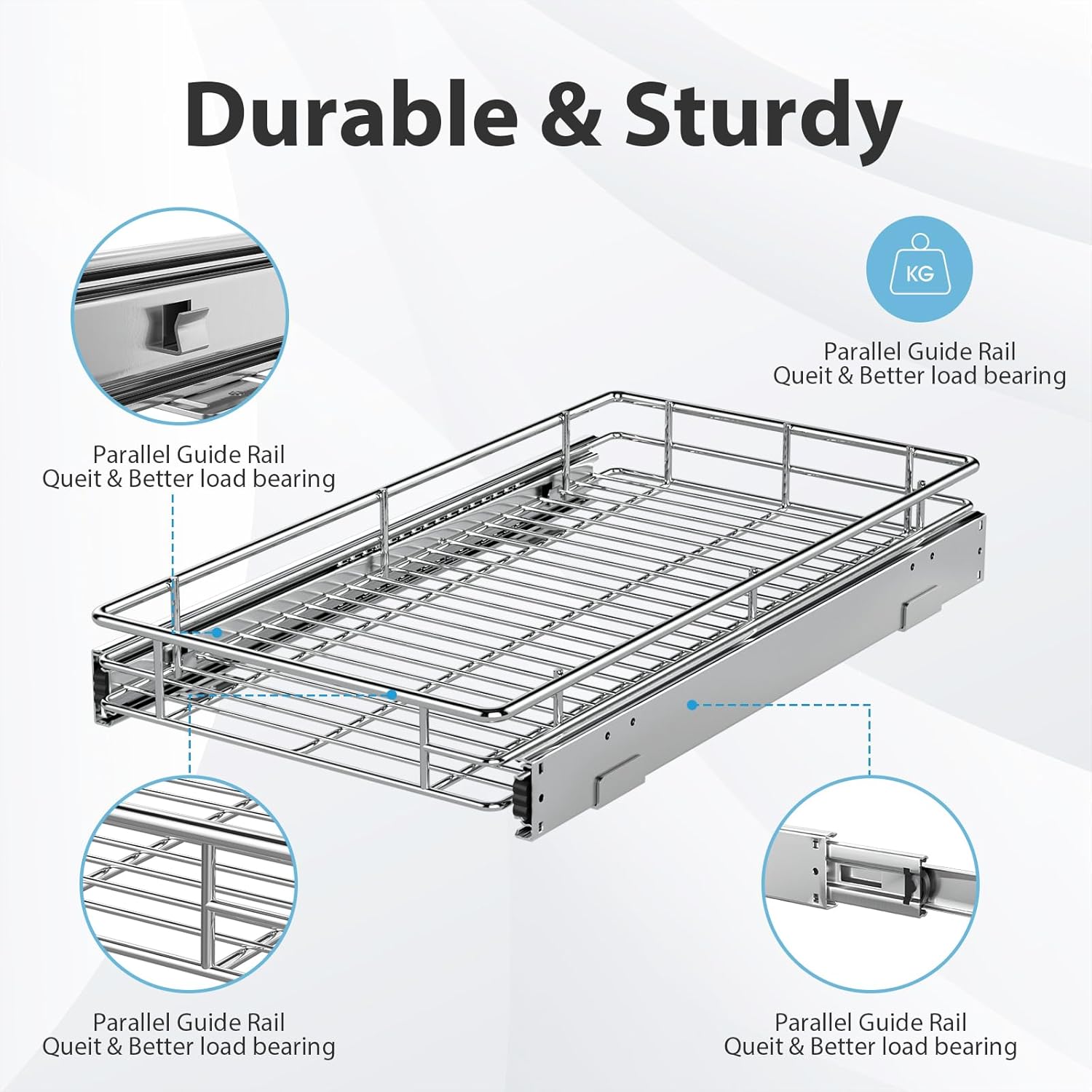 • 🏡Exceptional Durability: Crafted from heavy metal with a chrome finish, this pull-out organizer is built to last, ensuring long-lasting storage for your kitchen essentials.