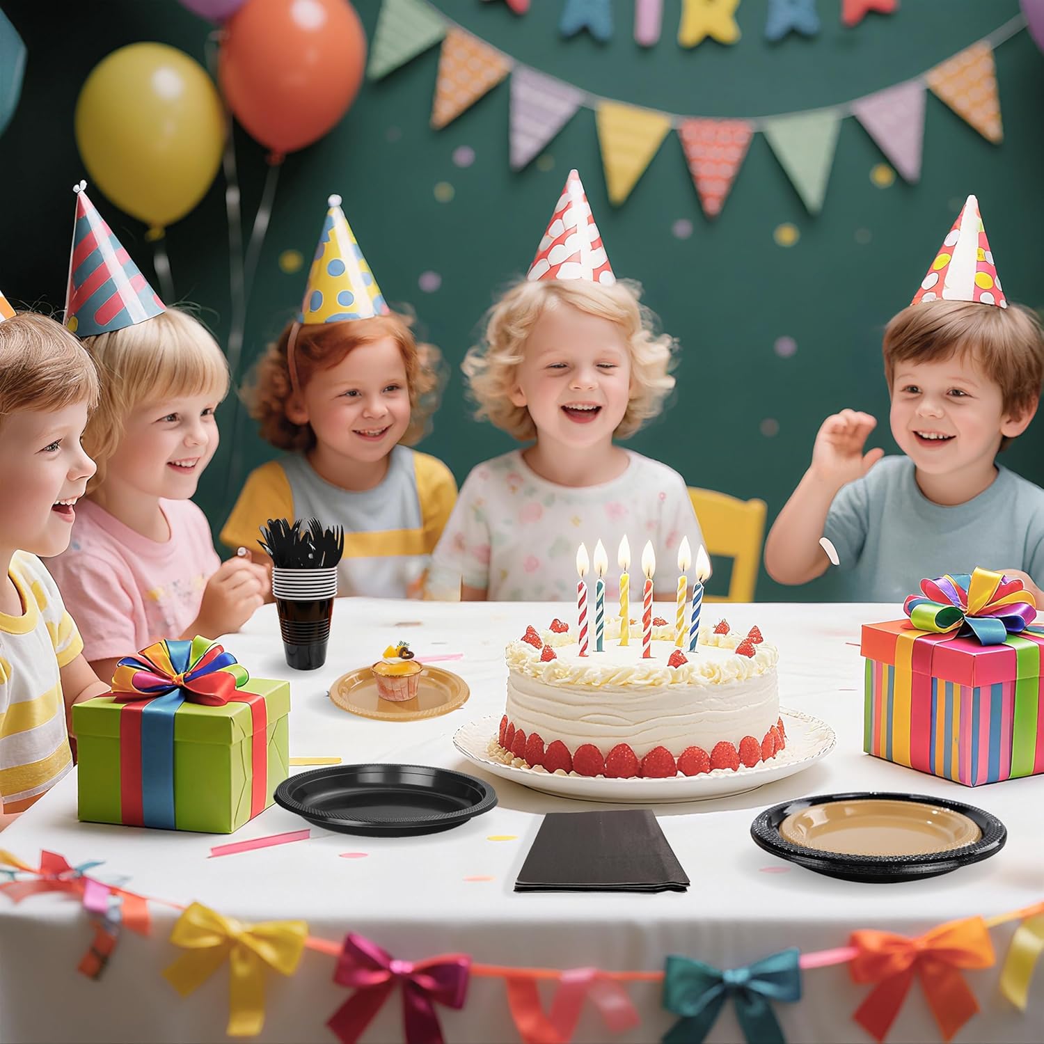 • HEALTH & SAFETY:Our halloween plates and napkins are sturdy and durable, made of 100% food-grade plastic and BPA-free. Plastic black plates are paired with cutlery, plastic cups and napkins in the same color for a simple yet sophisticated look that can add a touch of class and style to your party.