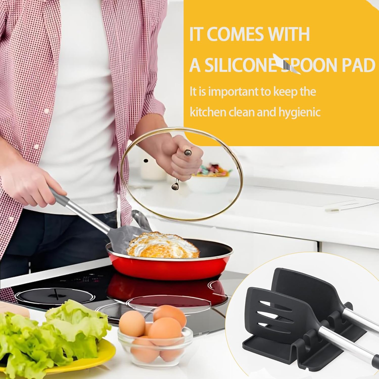 • Versatile 3-Piece Set: Includes a 13.78-inch spatula, a 13.78-inch slotted spatula, and a 5.5"x5.5"Multifunctional shelf spoon pad. Perfect for frying, baking, and serving, this set is designed to meet all your cooking needs and elevate your culinary creations