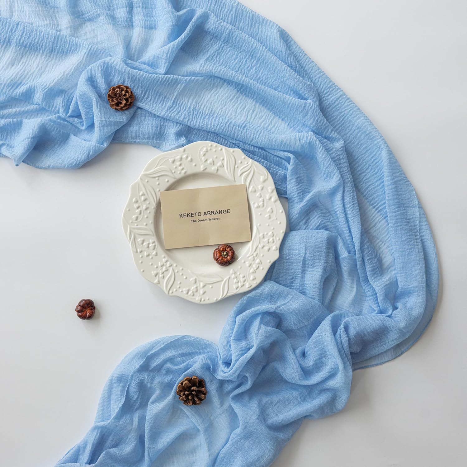 3pcs Light Blue Gauze Rustic Cheesecloth Table Runner 120 Inch 10 FT for Wedding Baby Shower Bridal Shower Birthday Engagement Garden Outdoor Party Long Sheer Boho Decorations
