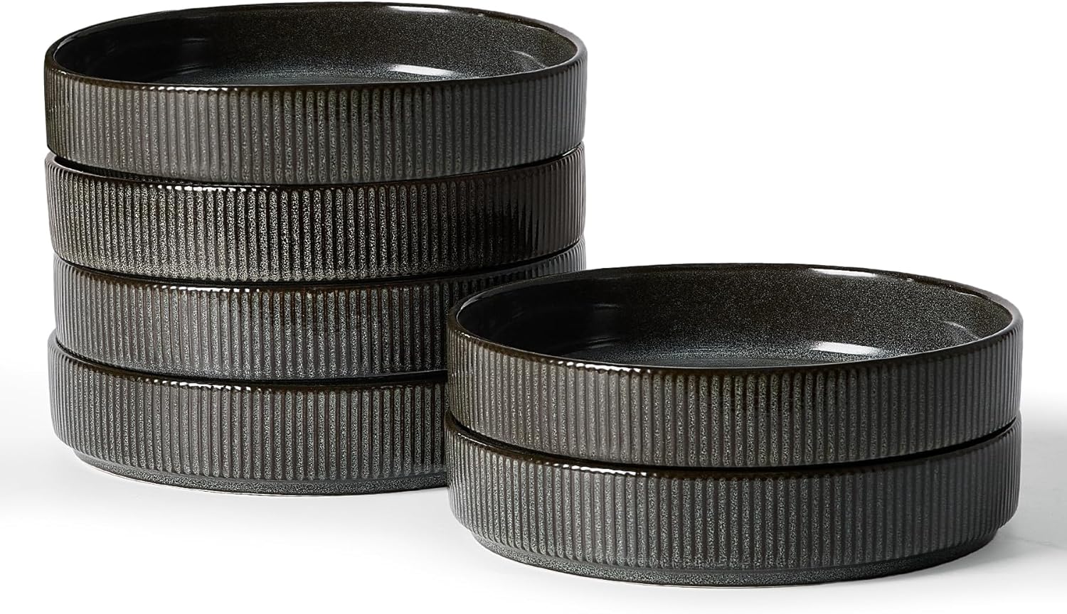 famiware Star 7.5" Pasta Bowls Set, Salad Bowl Set of 6, Double Reactive Glaze, Stackable, Perfect for Your Friend for Housewarming, Thanksgiving, Christmas, Deep Forest