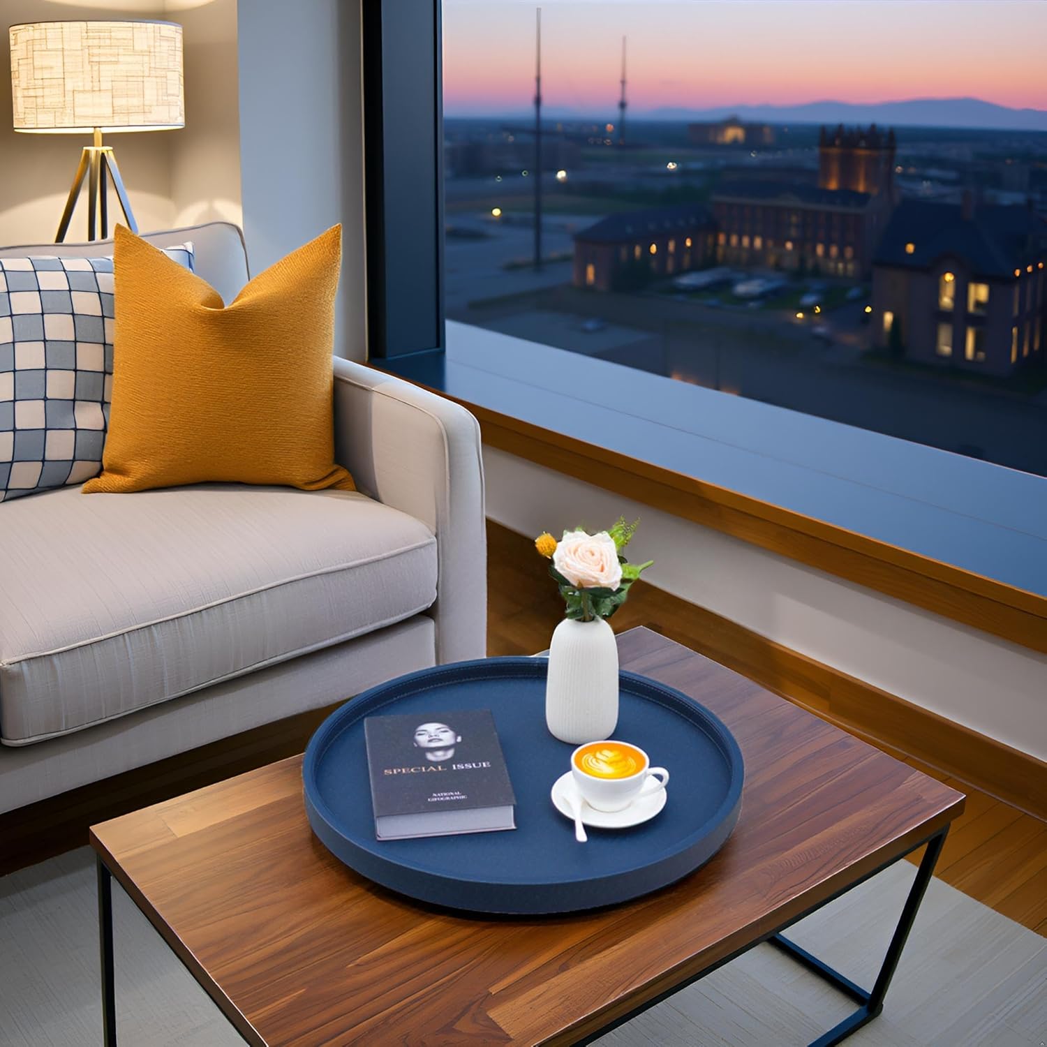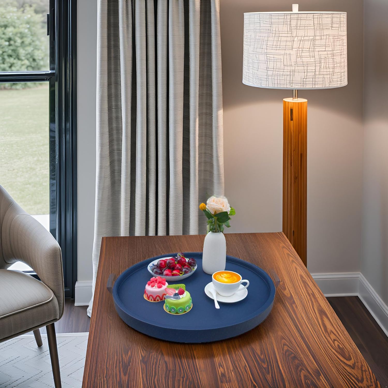 20-inch Round Ottoman Serving Tray - Textured PU Leather Coffee Table Decor, Waterproof Heat-Resistant Large Organizer for Home, Office, Bed & Party Essentials (Navy Blue, 20in)