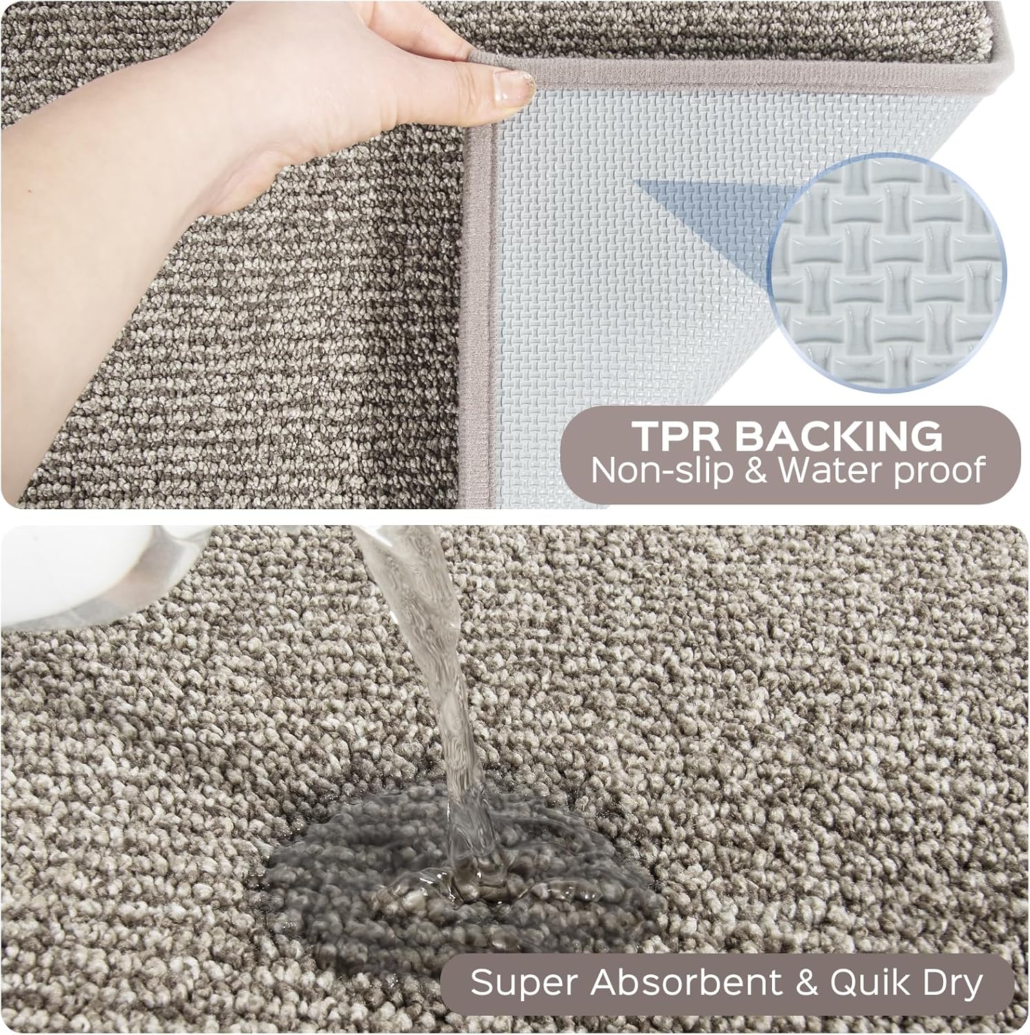 • ANTI-SLIP TECHNOLOGY: Half-moon shaped design, specially engineered for anti-slip performance. The waterproof thermoplastic rubber backing ensures superior grip and slip resistance, keeping the rug firmly in place for maximum safety—perfect for busy entryways!