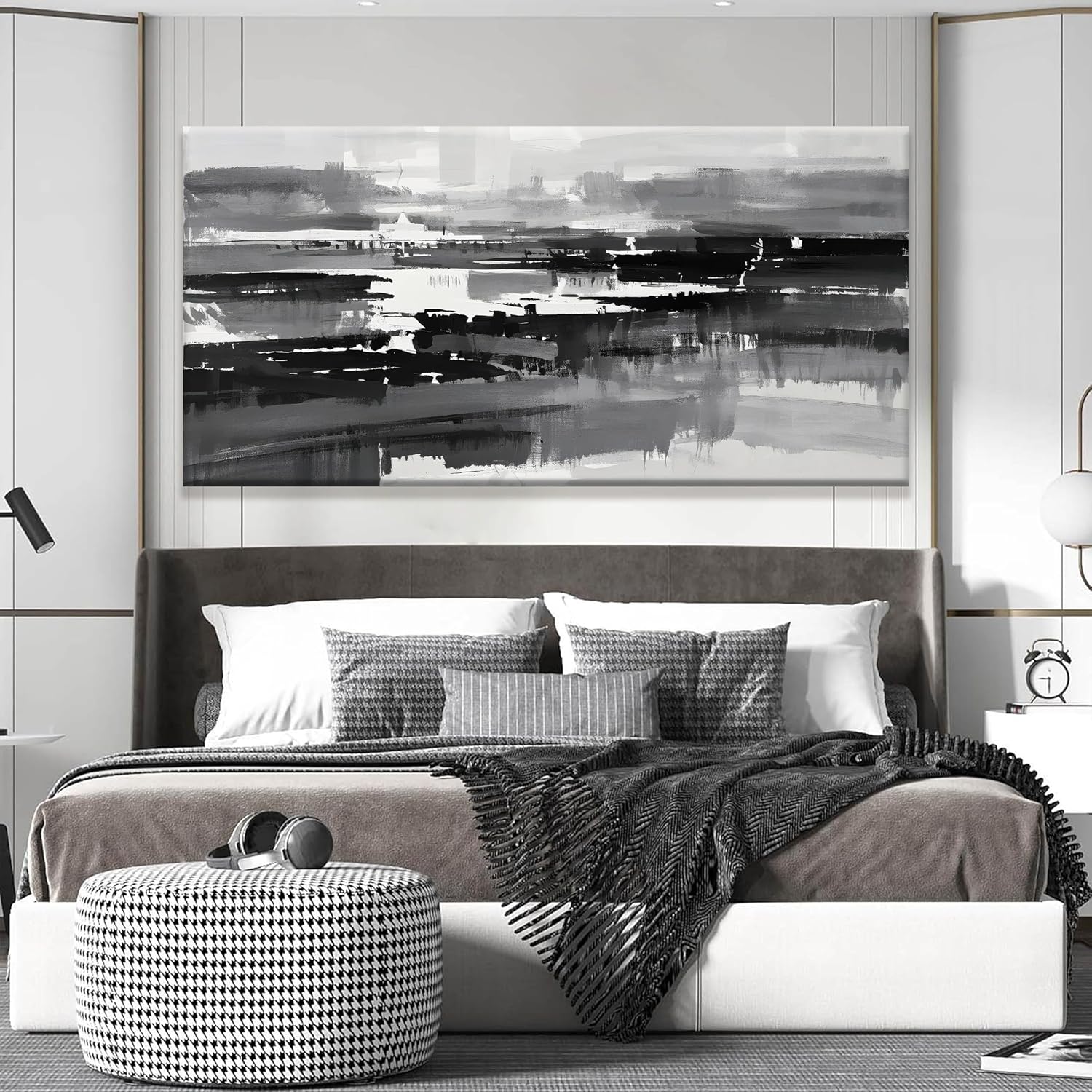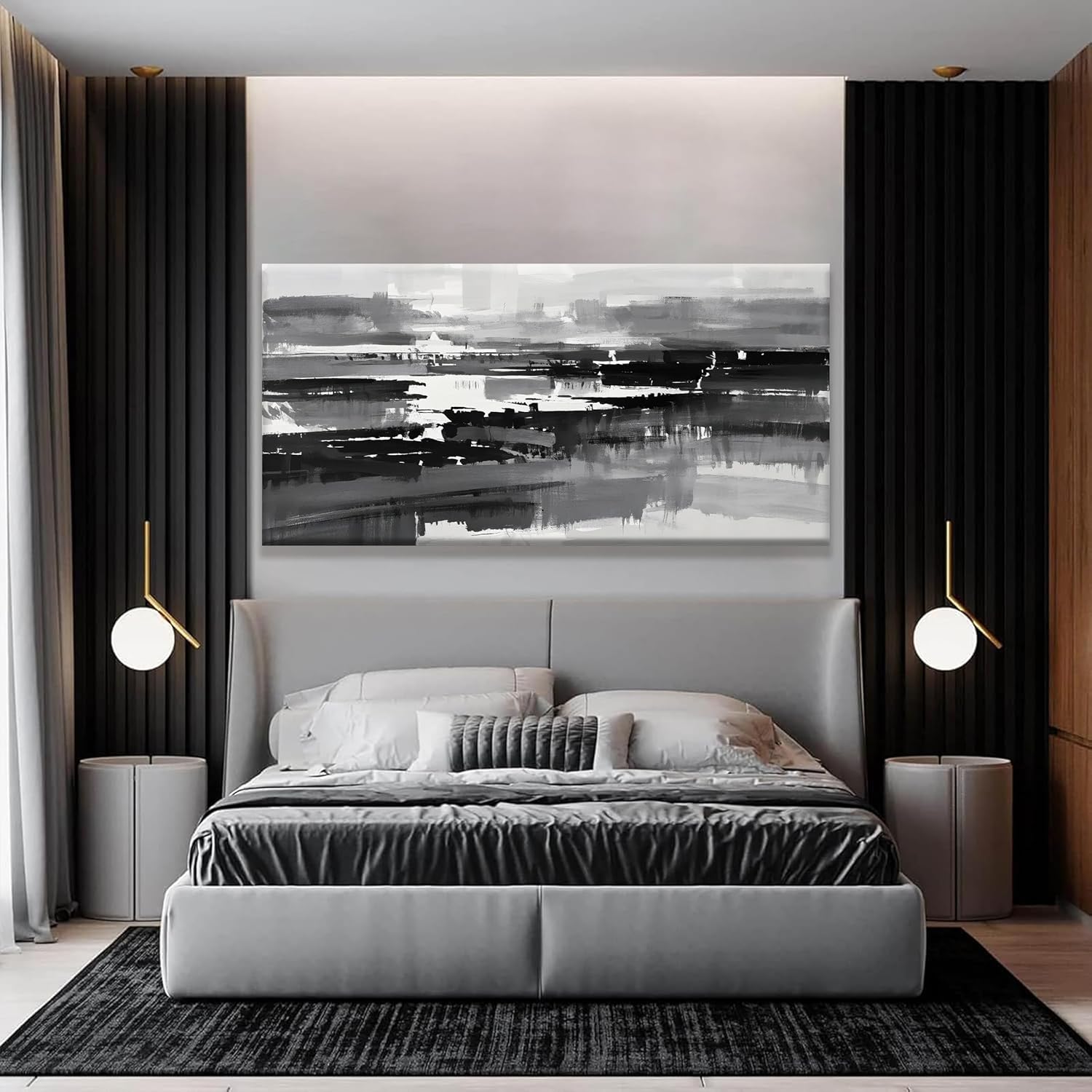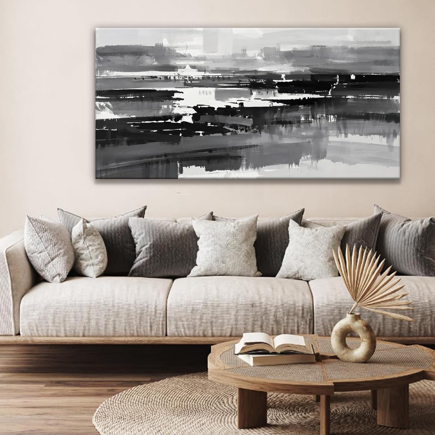 Abstract Wall Art For Living Room Modern Canvas Art Wall Decor Grey White Wall Art For Bedroom Office Decor Grey Abstract Art Painting Ready To Hang Pictures Artwork 24×48 In
