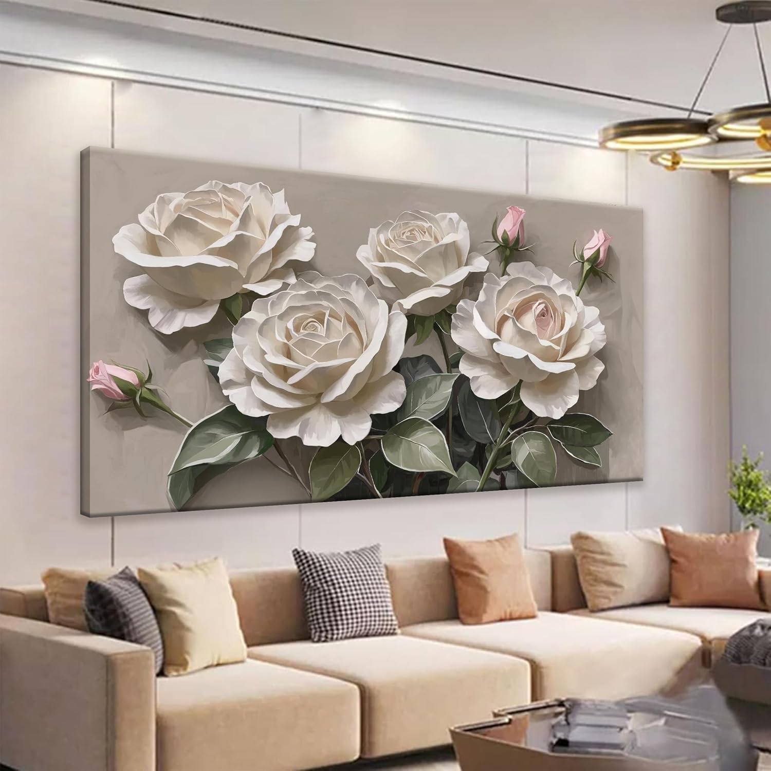 Canvas Art Wall Decor Modern Minimalist Home Wall Decor Flower Paintings White Wall Art Prints Pink White Floral Wall Art Pictures For Bedroom Kitchen Office Artwork 20"×40"