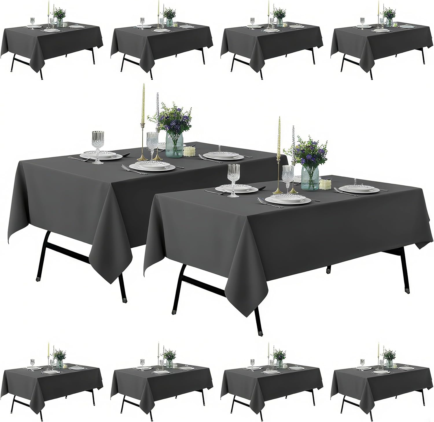 10-Pack 60x102 inch Grey Table Cloths, Solid Stain and Wrinkle Resistant Oblong Tablecloth, Premium Plain Weave Polyester Fabric Rectangle Table Linen Covers for Hotel, Wedding