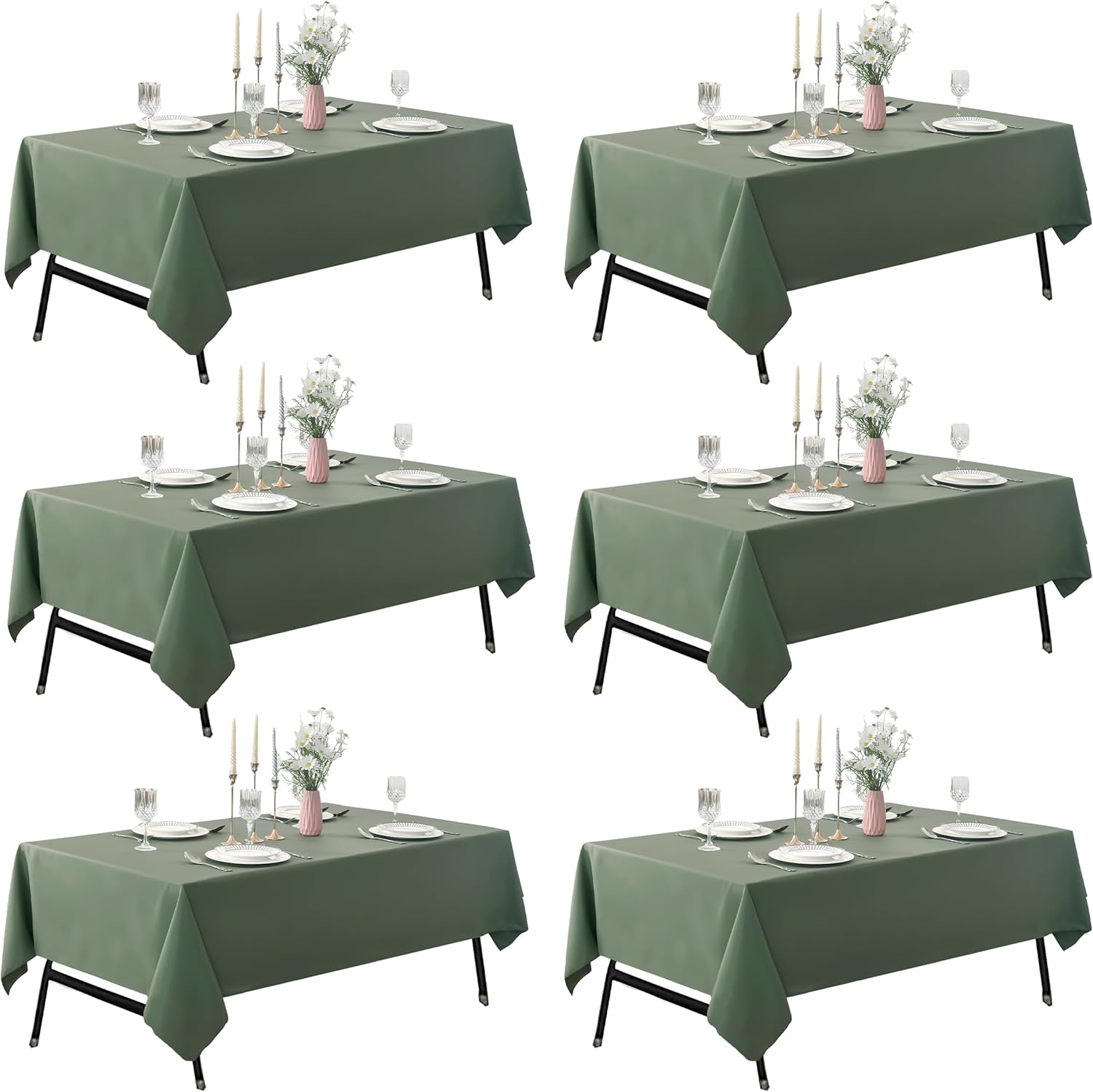 6-Pack 60x84 inch Sage Green Table Cloths, Solid Stain and Wrinkle Resistant Oblong Tablecloth, Premium Plain Weave Polyester Fabric Rectangle Table Linen Covers for Hotel, Banquet