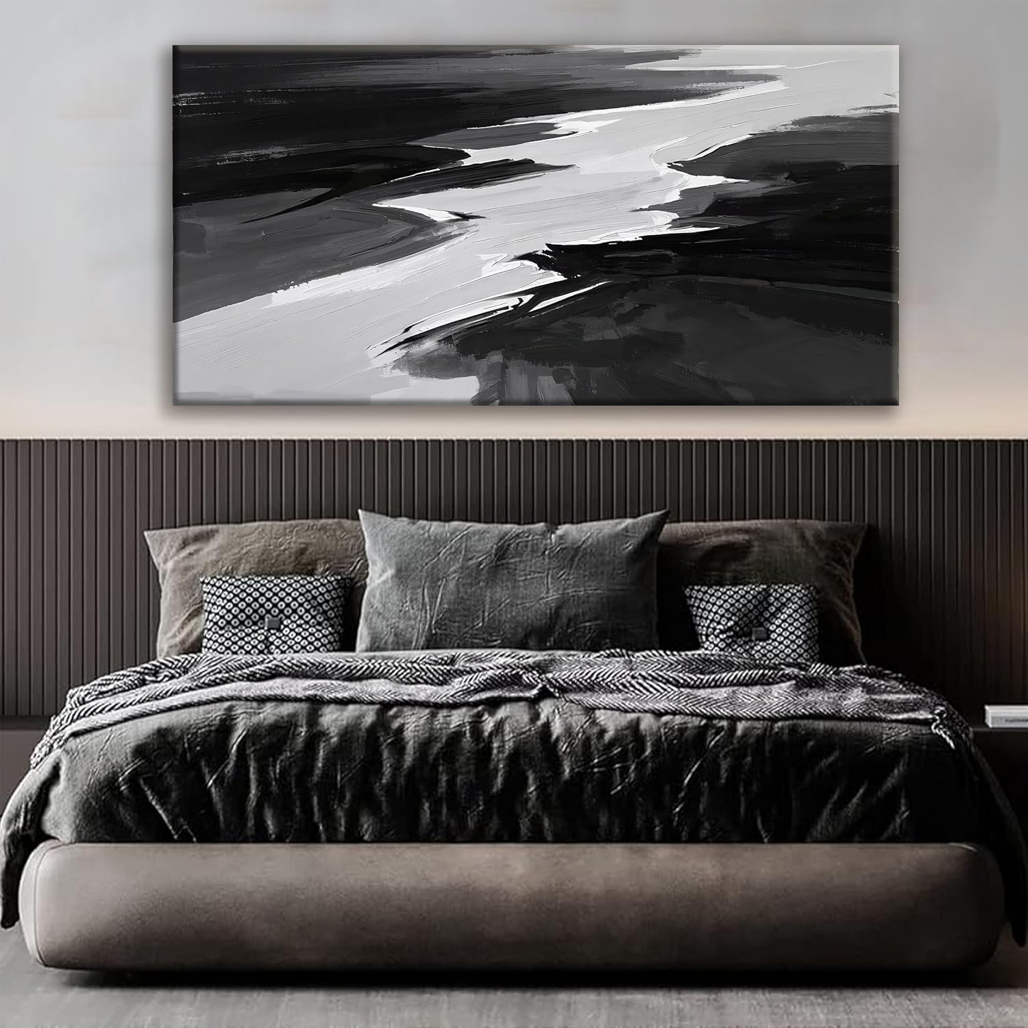 Large Abstract Wall Art For Living Room Black And White Wall Art Painting Artwork Canvas Art Wall Decor Simple Picture Abstract Wall Decor Bedroom Office 29"X 58"