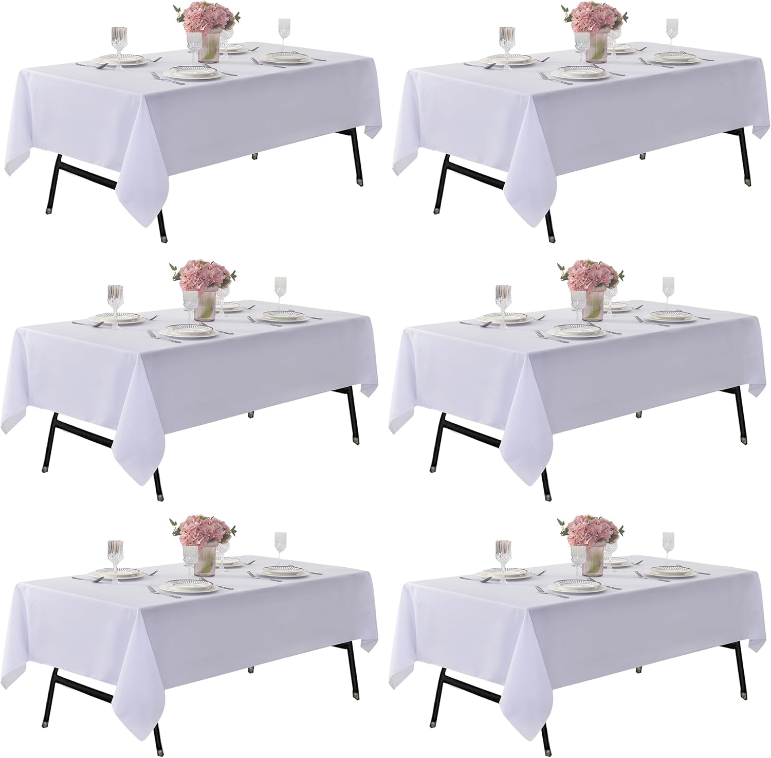 6-Pack 60x84 inch White Table Cloths, Solid Stain and Wrinkle Resistant Oblong Tablecloth, Premium Plain Weave Polyester Fabric Rectangle Table Linen Covers for Hotel, Banquet