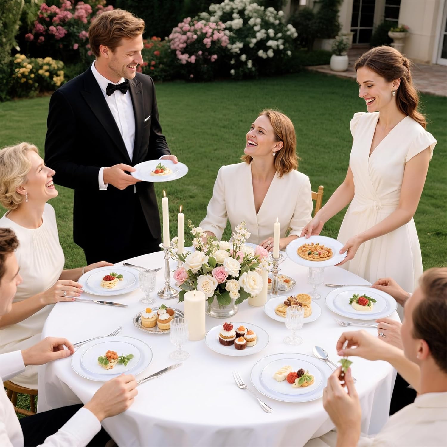 • Instant Cleaning:Disposable plate design, no need to wash after the party! These fashionable tableware are disposable after use, allowing you to save more time accompanying guests. Let more beautiful memories stay in the moments of gathering