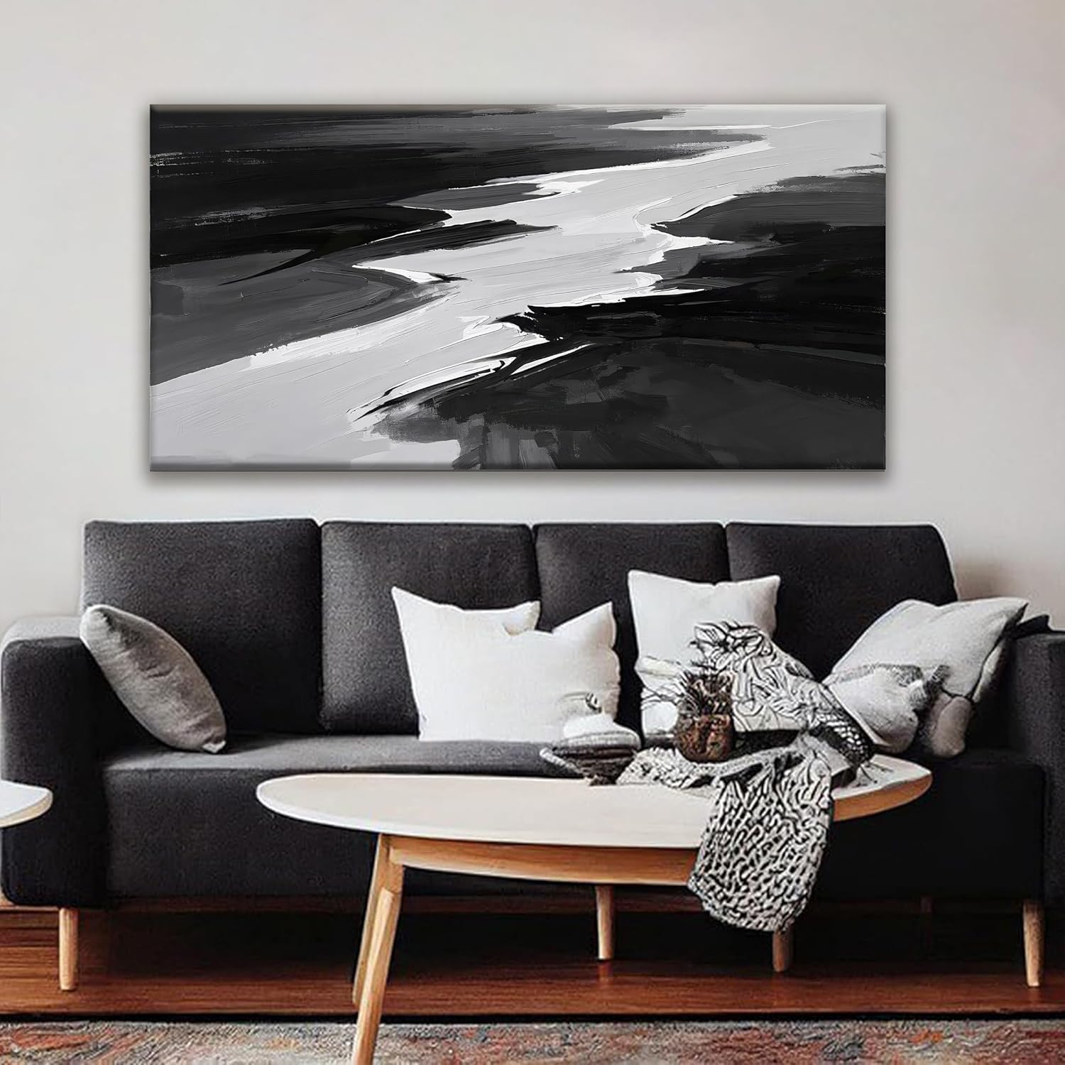 Canvas Art Wall Decor Prints Black And White Abstract Wall Art Painting Modern Grey Abstract Wall Decor Artwork For Living Room Pictures For Bedroom 24x48 In