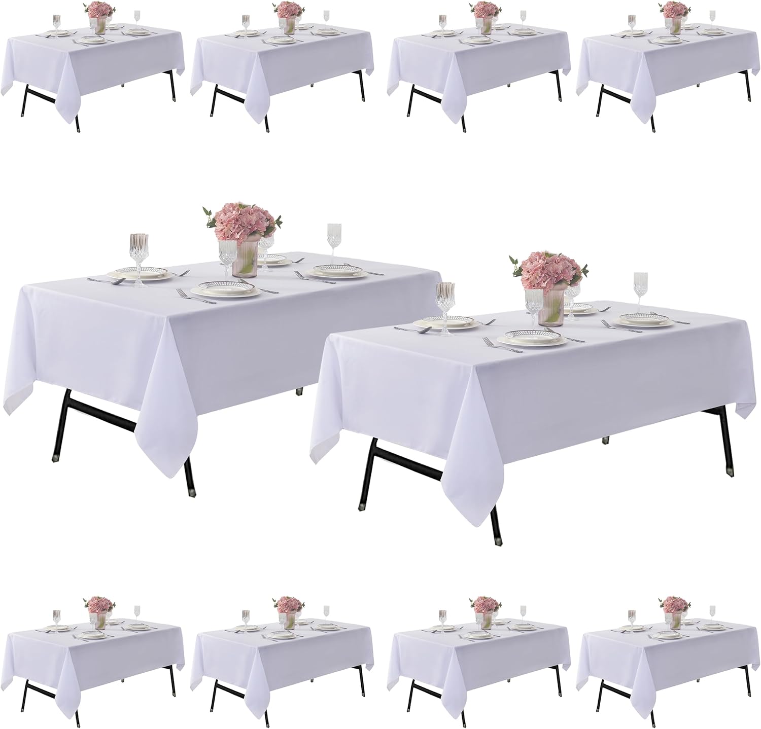10-Pack 60x102 inch White Table Cloths, Solid Stain and Wrinkle Resistant Oblong Tablecloth, Premium Plain Weave Polyester Fabric Rectangle Table Linen Covers for Hotel, Wedding