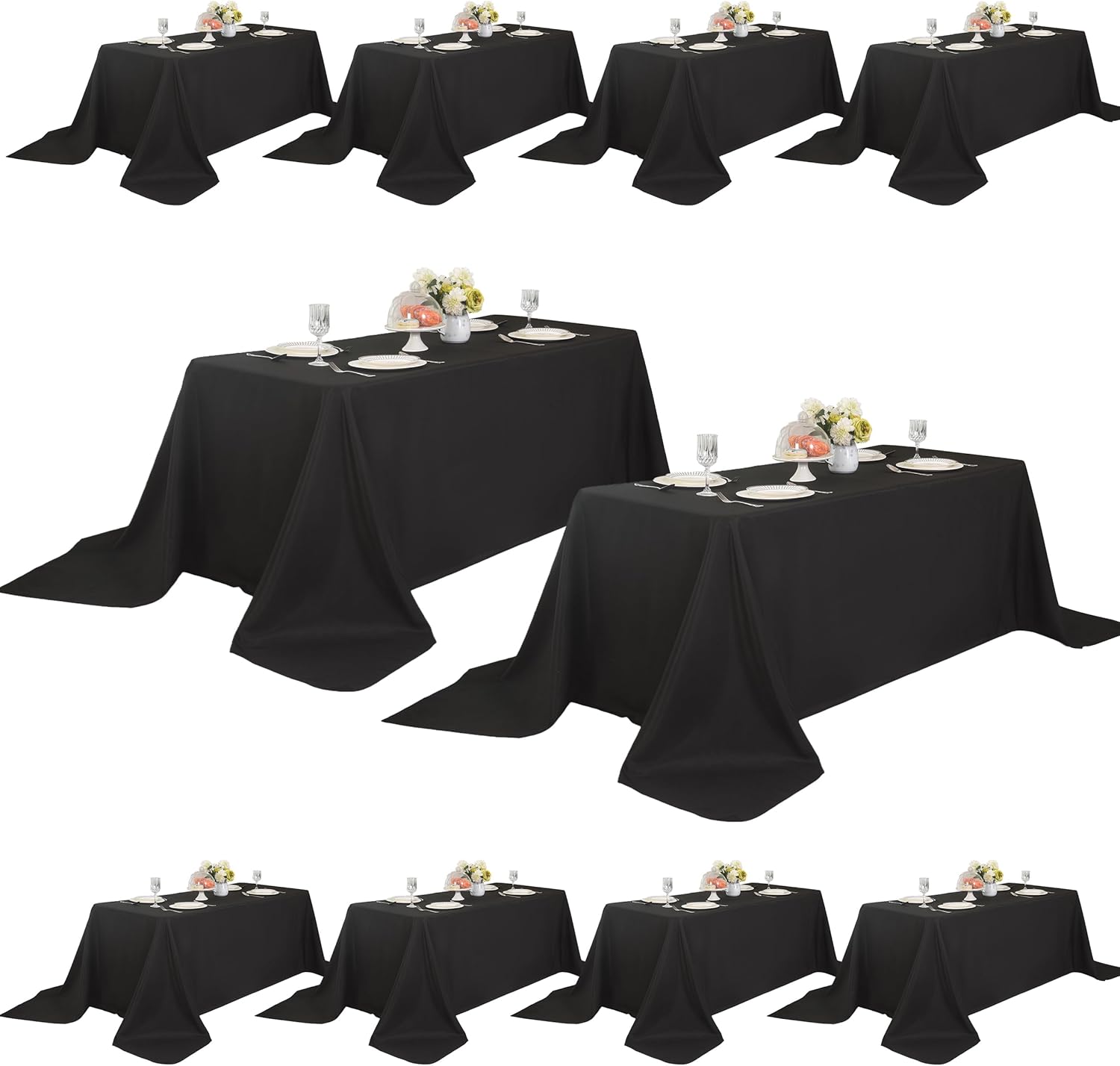 10-Pack 90x156 inch Black Table Cloths, Solid Stain and Wrinkle Resistant Oblong Tablecloth, Premium Plain Weave Polyester Fabric Rectangle Table Linen Covers for Hotel, Banquet