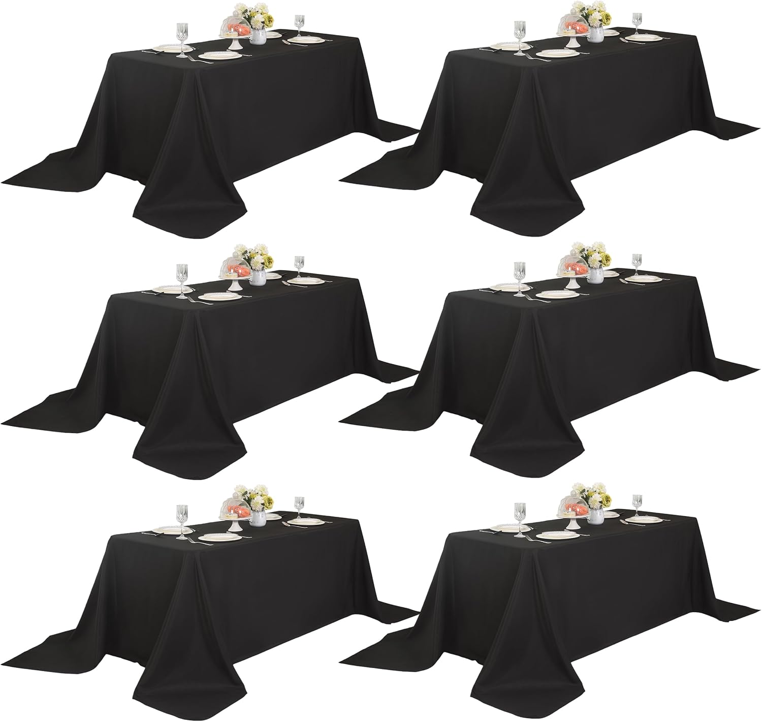 6-Pack 90x156 inch Black Table Cloths, Solid Stain and Wrinkle Resistant Oblong Tablecloth, Premium Plain Weave Polyester Fabric Rectangle Table Linen Covers for Hotel, Banquet