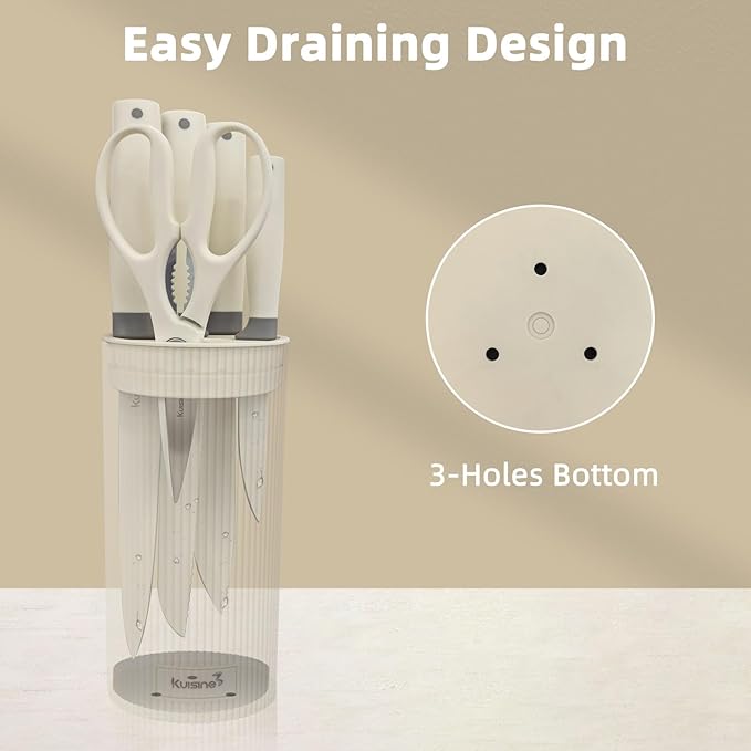 Kuisine Premium kitchen Knife Set with block,High Carbon Stainless Steel Forged,Ergonomic Non-slip Handle Knife Block Set(6PCS,Ivory)