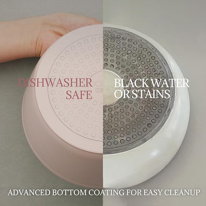 • Innovative Dual-sided Coating for Effortless Cleanup- The outstanding internal and exterior coating of our ceramic cookware set allows food residue to slide off with just an effortless wipe, making cleanup a breeze and saving you cooking time. Dishwasher-safe to free your hands after cooking