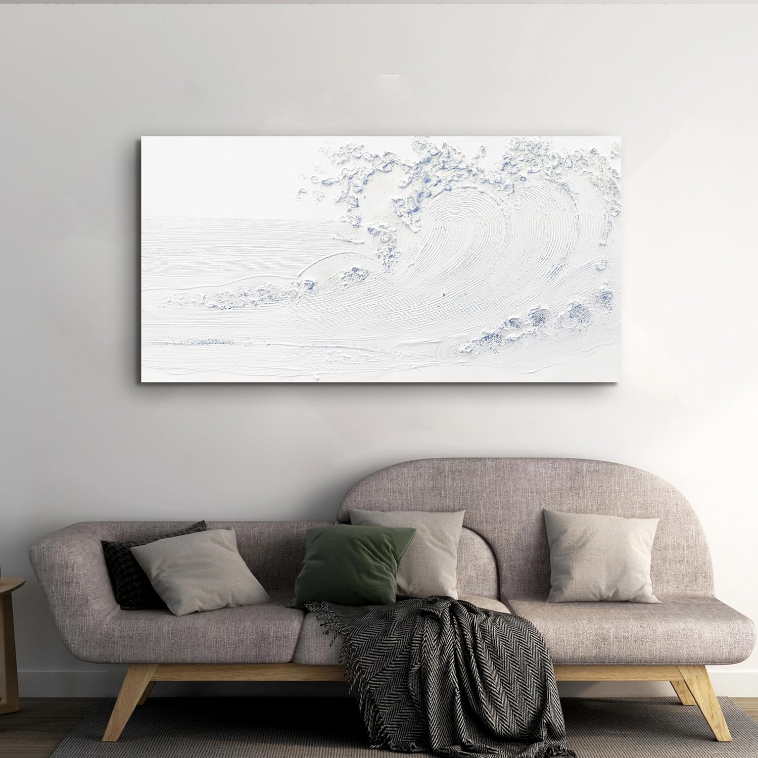 Canvas Wall Art Decor Modern Wall Art Pictures for Living Room White Blue Wave Wall Art Prints Wave Artwork for Walls Landscape Coastal Wall Art Decor Art Work for Home Office Room Wall Decor 20"x40"
