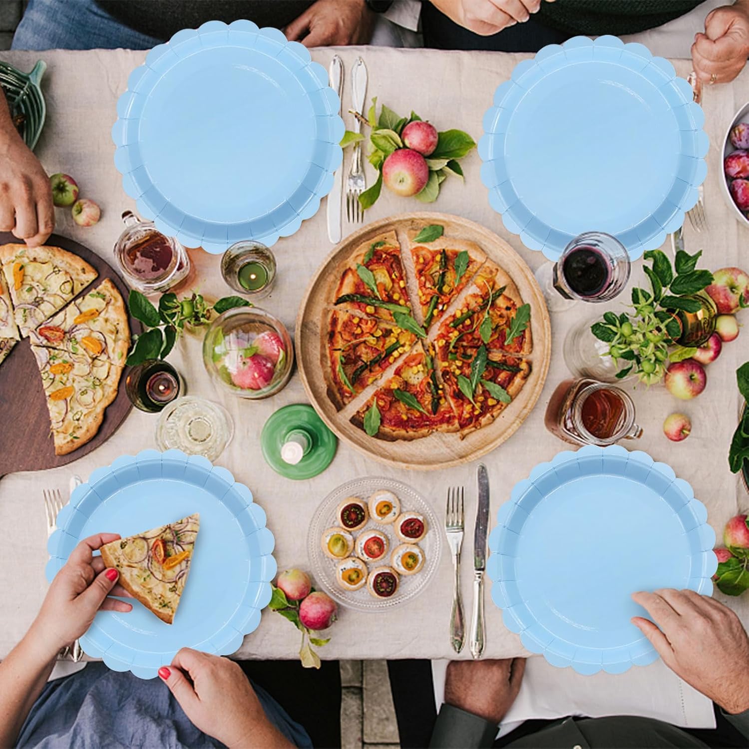50Pcs Light Blue Paper Plates Blue Party Supplies 9 Inch Disposable Dessert Plates Birthday Party Plates for Valentines Tea Party Baby Shower Wedding Graduation Picnic BBQ