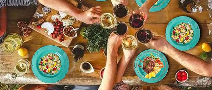 • Stylish Teal Dish: Elevate your table setting with this vibrant teal color, perfect for modern kitchens, patios, or beachside dining.Versatile & Multipurpose dish set Great for indoor and outdoor use, from casual dinners to parties, BBQs, and holiday gatherings.