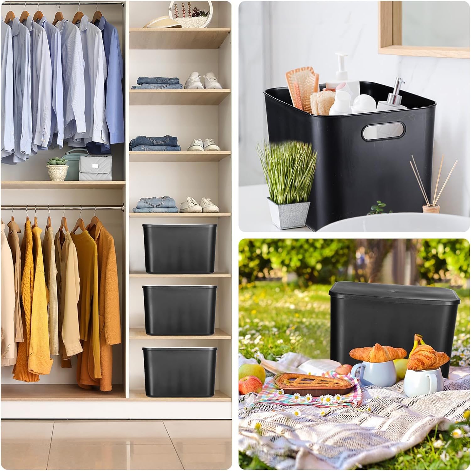 • Sufficient Quantity: you will receive 8 black desktop storage boxes with lids, sufficient quantity, so you can use the storage baskets as cookware storage, clothing storage, daily necessities storage, office storage, etc