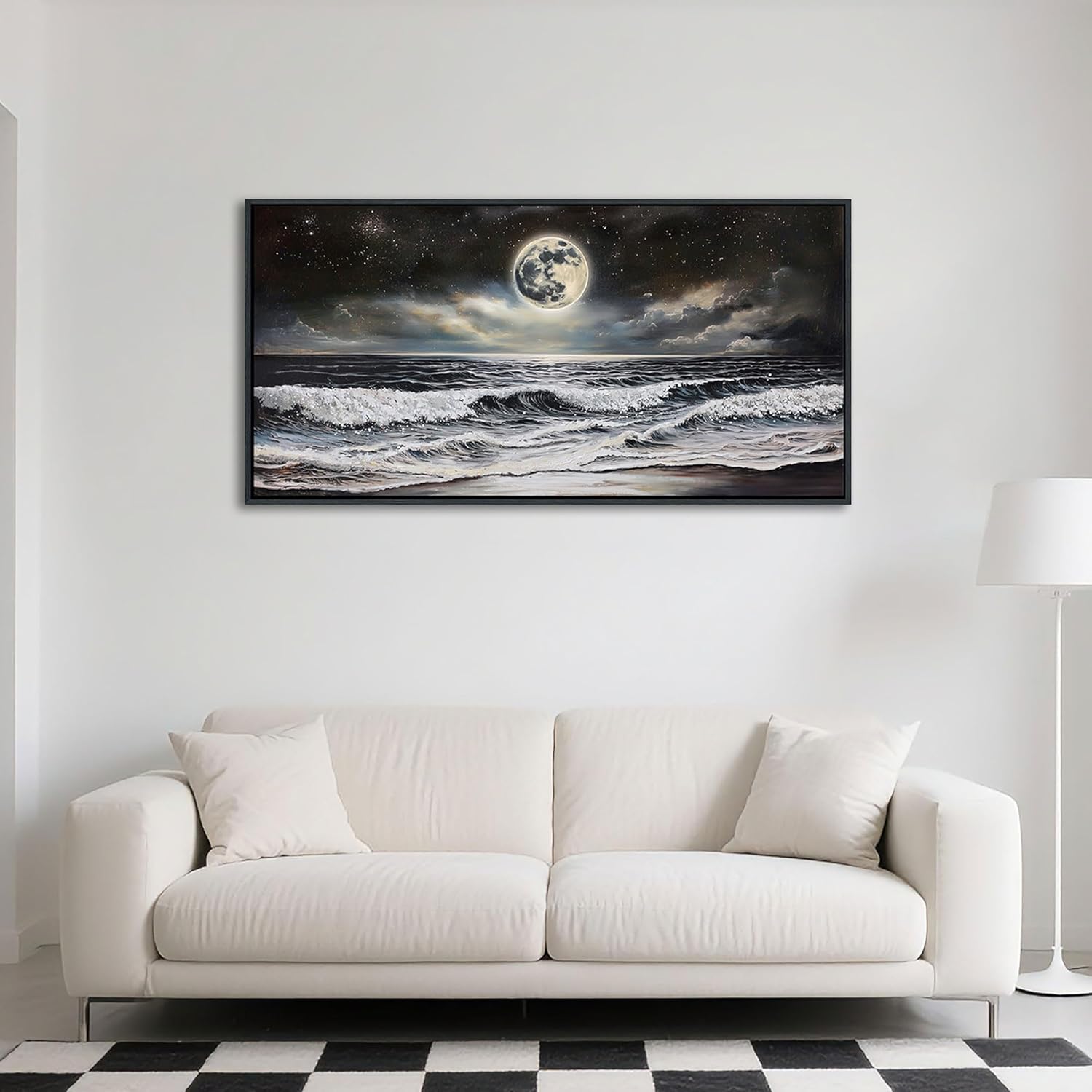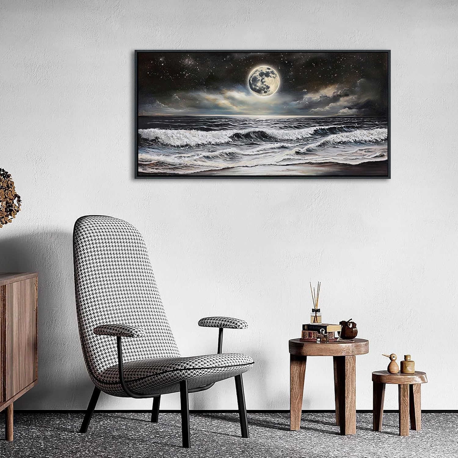 • Beach Pictures Wall Art: This beach canvas wall art presents a mesmerizing view of the ocean under a full moon.It brings the allure of a moonlit beach right into your home, perfect for those who love the mystery and beauty of the night sea.
