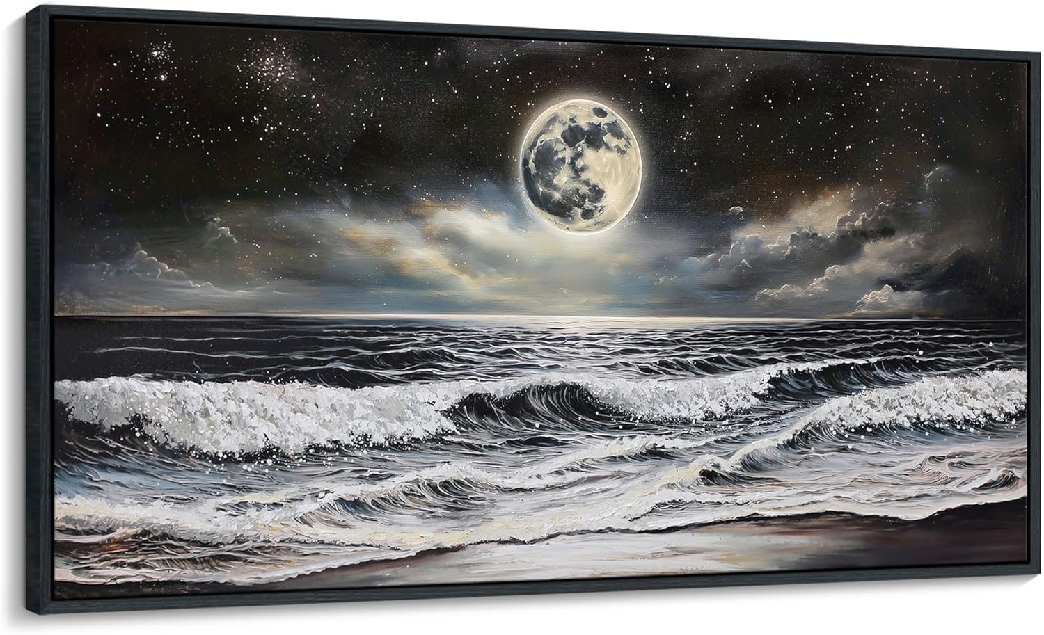 • Beach Pictures Wall Art: This beach canvas wall art presents a mesmerizing view of the ocean under a full moon.It brings the allure of a moonlit beach right into your home, perfect for those who love the mystery and beauty of the night sea.