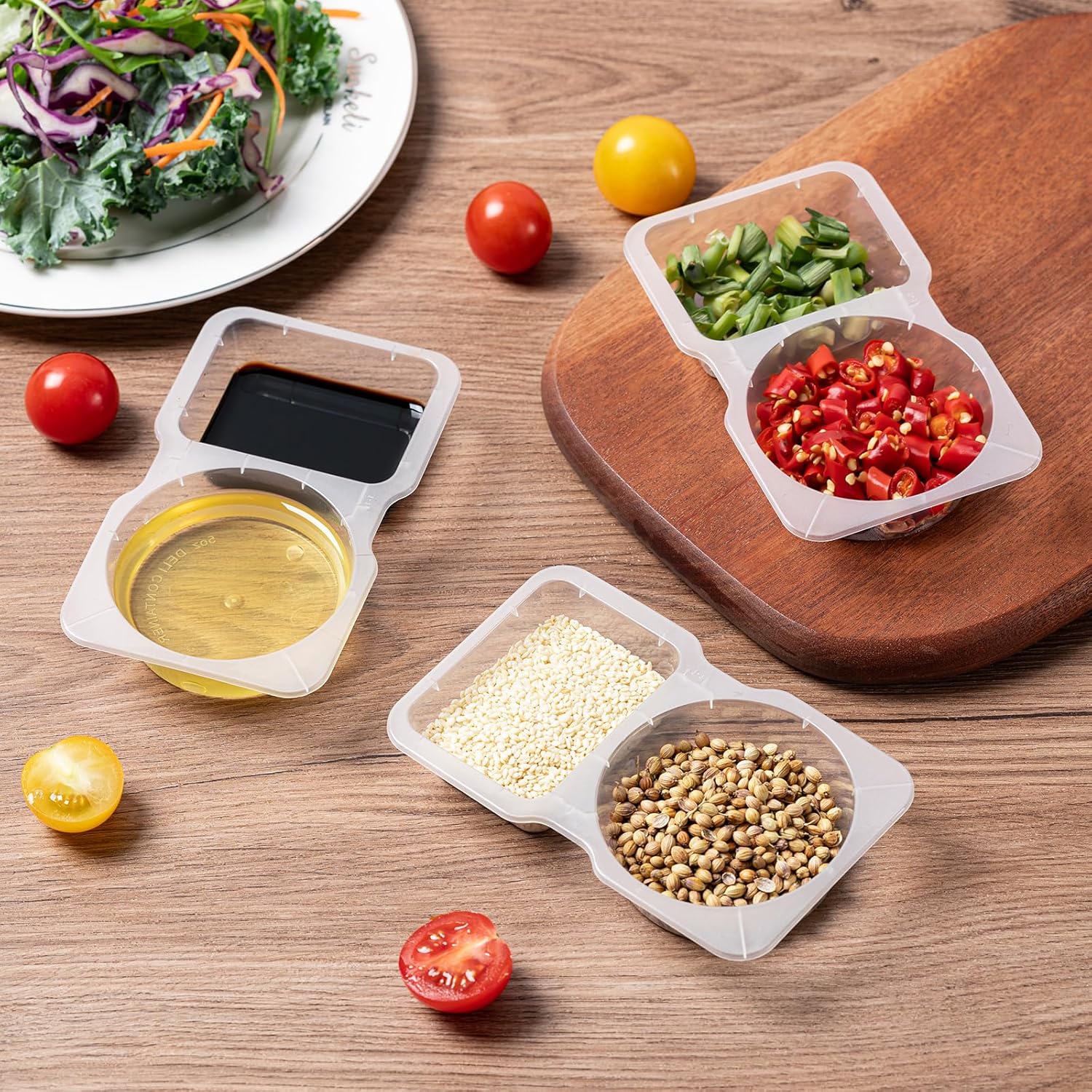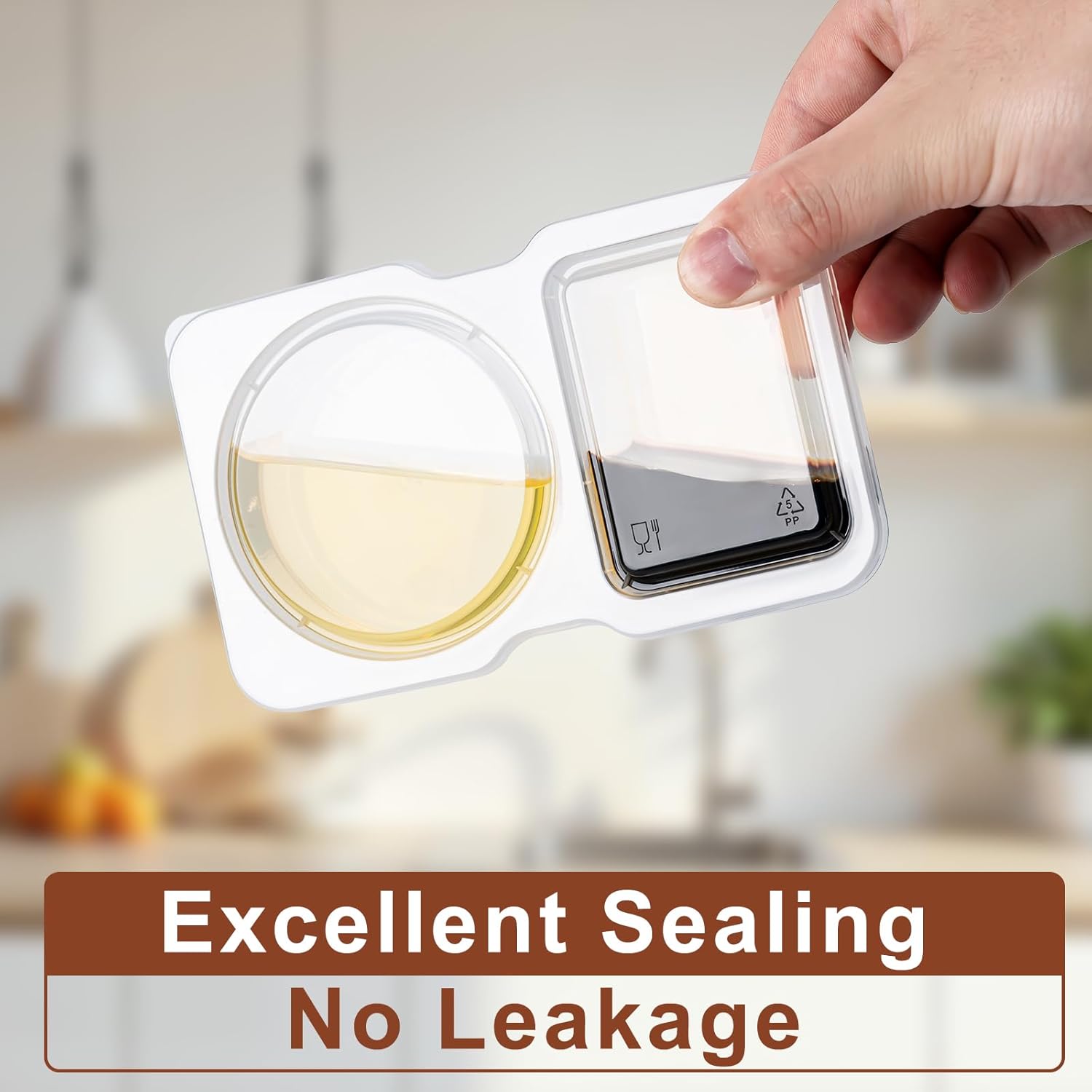 • Great Sealing: Every condiment container comes with a safety lid with an inner buckle design, which seals well and prevents spills, suitable for packing all kinds of sauces.