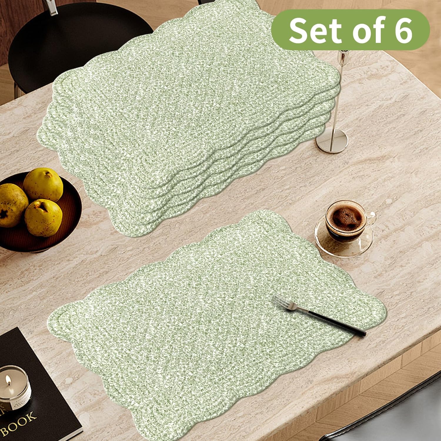 6 PC Quilted Placemats, 18"X13"Extra Large Cotton Placemats Set of 6, 100% Cotton Fabric Washable Cloth Table Mats for Kitchen & Dining Table - Soft &Easy Clean(Green Crushed Flower, Rectangular)