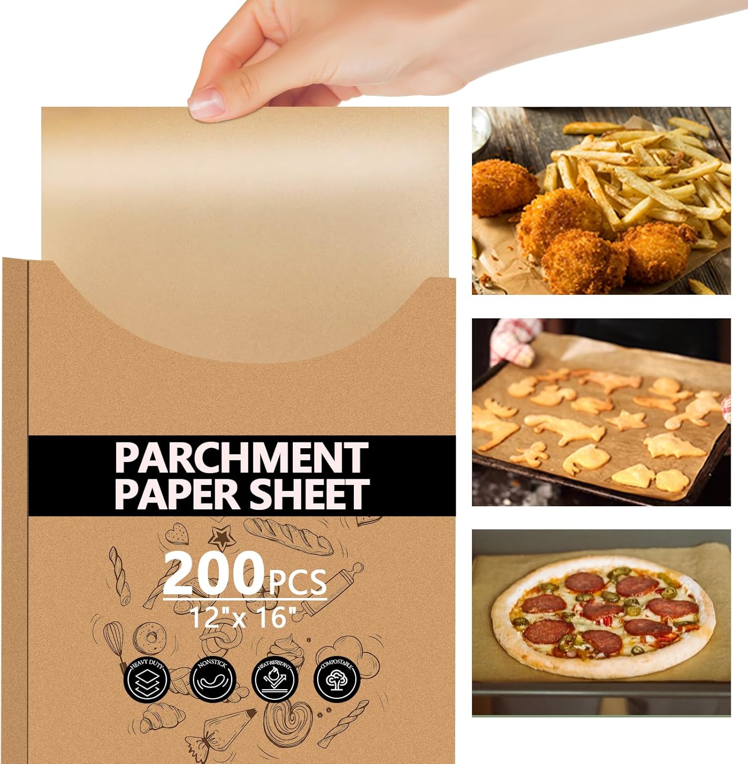 200PCS Thickened Precut Parchment Paper Sheets, 12×16 In Heavy Duty Non-Toxic & Unbleached Parchment Baking Paper for Baking, Grilling, Non-Stick & Comes in Convenient Packaging, Brown