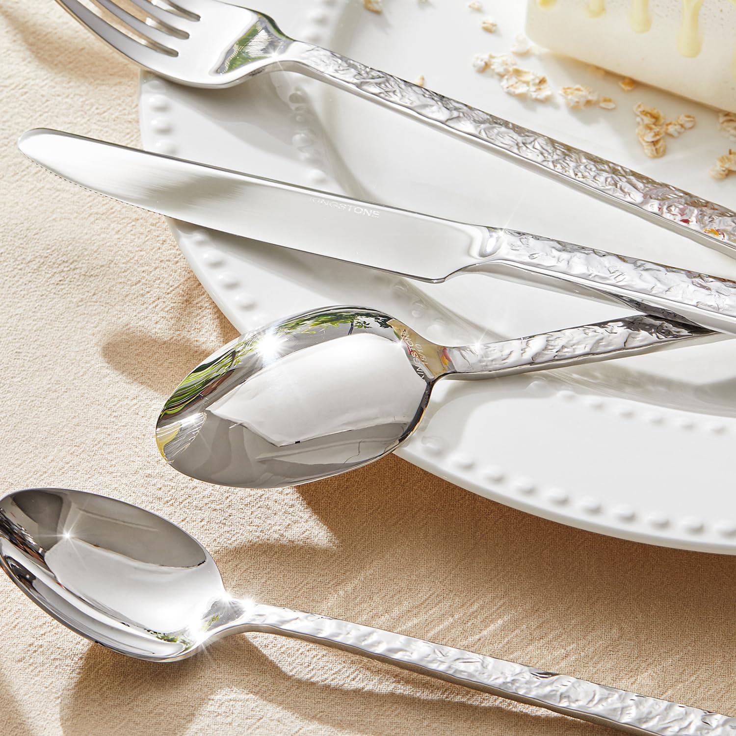 • HEAVY DUTY SILVERWARE SET-Crafted of 18/10 stainless steel for exceptional durability and brilliant shine, each piece is crafted from a single stainless steel ingot for extraordinary weight and seamless line.
