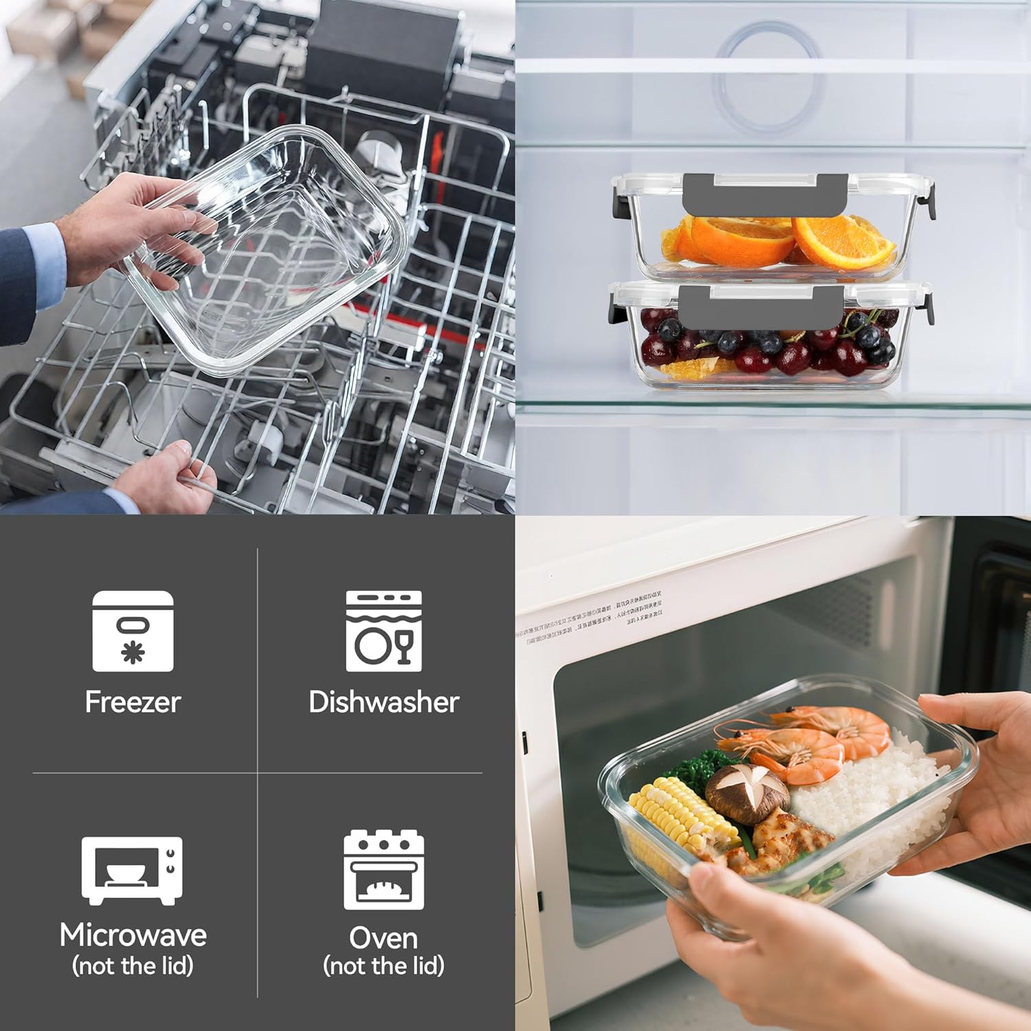 • OVEN, MICROWAVE & FREEZER SAFE: Our glass food storage containers are made from high quality borosilicate glass, which are safe for use in the oven, microwave (without lids), and freezer, providing you a convenient solution to cook in advance, freeze meals, and simply reheat when needed. Ideal for everyday use.