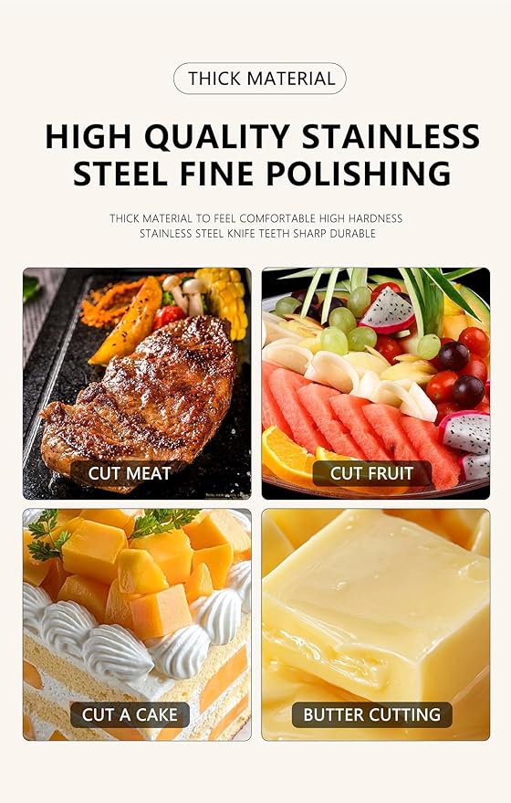 • Premium 18/0 Stainless Steel – Durable & Rust-Resistant]Crafted from high-quality 18/0 stainless steel (2.5-3.0mm thickness), this flatware set is rust-proof, corrosion-resistant, and built to last. Nickel-free and food-safe, it offers superior durability for daily use while maintaining a polished mirror finish that won’t fade over time.