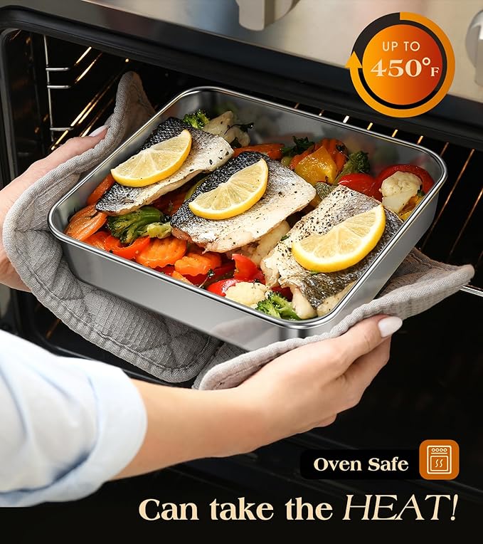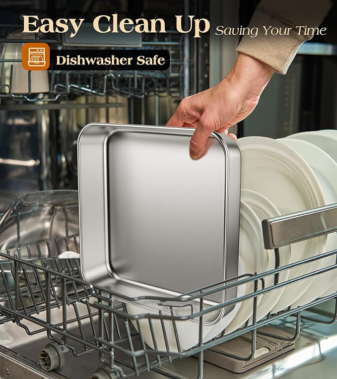 8 x 8-Inch Baking Pan with lid, 304 Stainless Steel Square Cake Pan, Commercial Grade Bakeware for Cakes Brownies Casseroles, Thicker Rectangle Sheet Cake Pans, Non-toxic & Heavy Duty &Dishwasher Safe