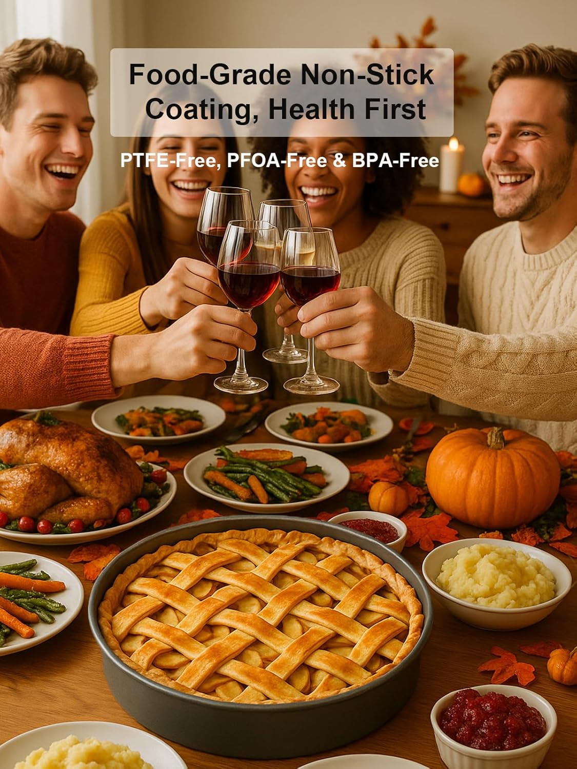 • 【Premium Non-Stick Surface--Healthy First】 Our metal pie pans feature a top-tier Xylan series coating by Whittford, an American coating brand, coupled with the innovative Plantinum-3X double-sided three-layer spraying process. This ensures a safe and easy-to-demould baking experience. The coating is completely free from PTFE, PFOA, and BPA, making it a healthy choice for all your baking needs.