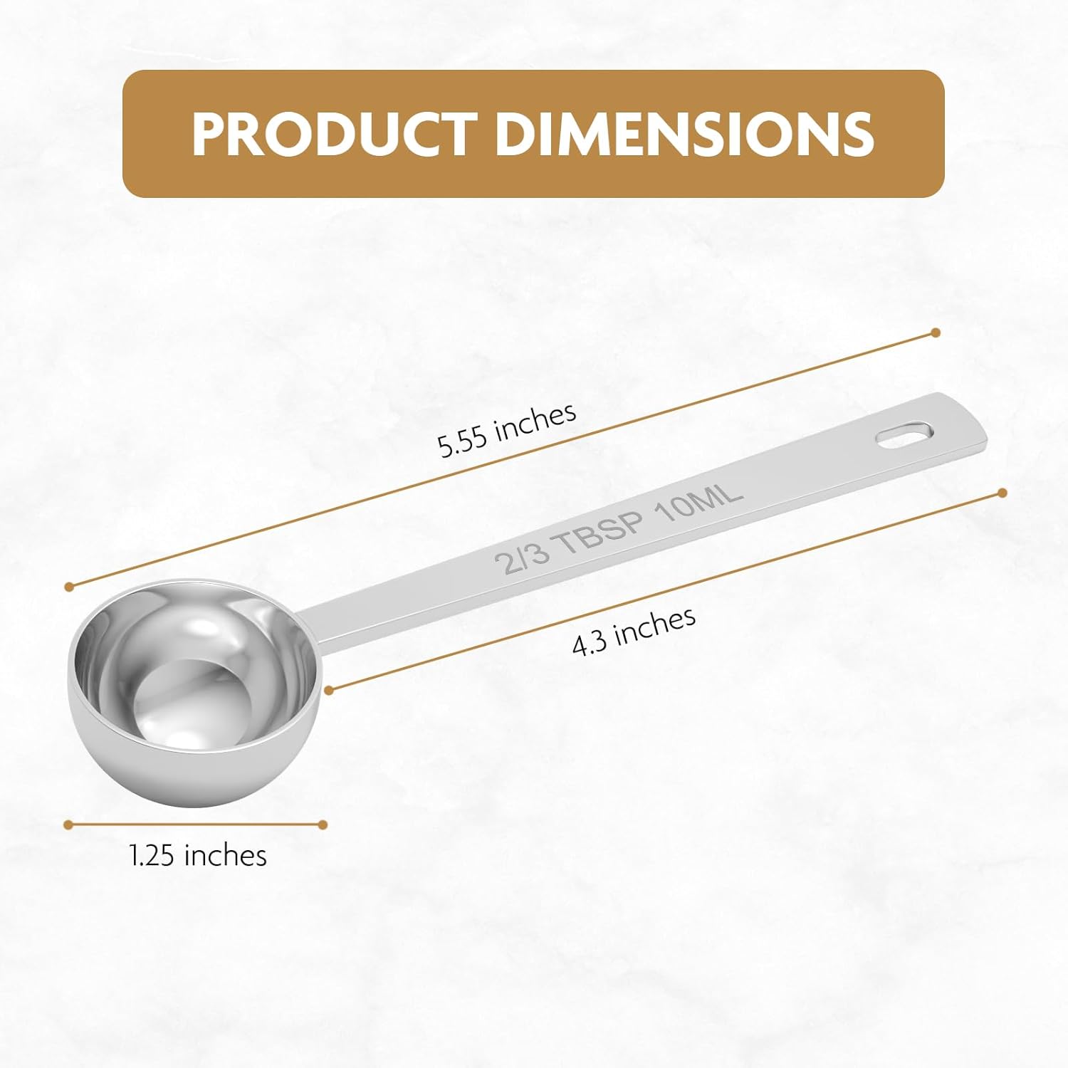 1PCS 2/3TBSP(2TSP, 10ML) 18/8 Stainless Steel Measuring Spoon, Metal Measure Scoop for Dry and Liquid Spices, Must-have for Kitchen