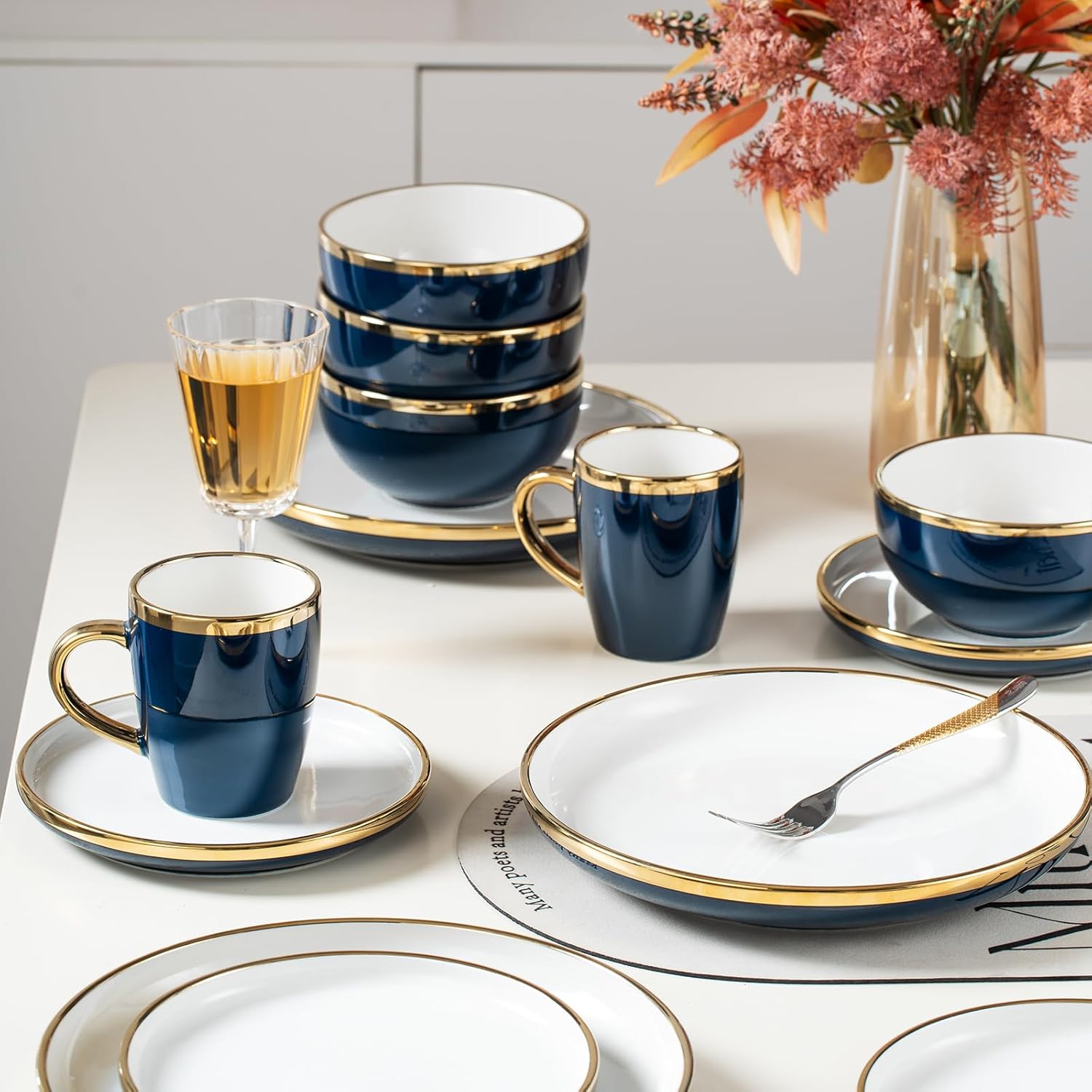 • 【DISHWASHER AND FREEZER SAFE】This items made of durable stoneware, These dinnerware sets are stackable and dishwasher, freezer safe! but CAN’T BE USED IN THE MICORWAVE AND OVEN. Wavebands of some types of microwave ovens may react with the gold metals. You also can wash them with dish soap and hot water easily.Just enjoy to use it.